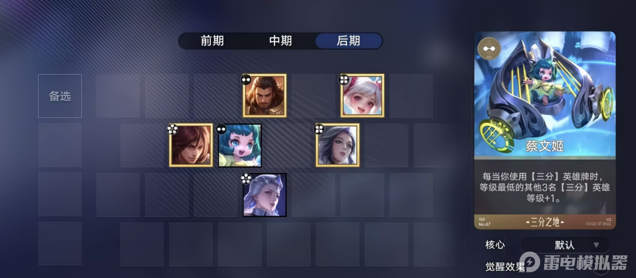 雷电模拟器的高清大屏为“三分射流”提供了极佳的战场视野。在快攻节奏下,大屏能让你在混乱团战中清晰捕捉蔡文姬的治疗覆盖与前排曹操的血线。尤其在“拍卖”与“英雄觉醒”环节,大屏幕能有效杜绝手机端的误触,助你精准锁定核心公孙离。在决赛圈,大屏视野更便于观察对手站位,从而实时微调阵容,将三分阵营的高攻速优势发挥到极致。