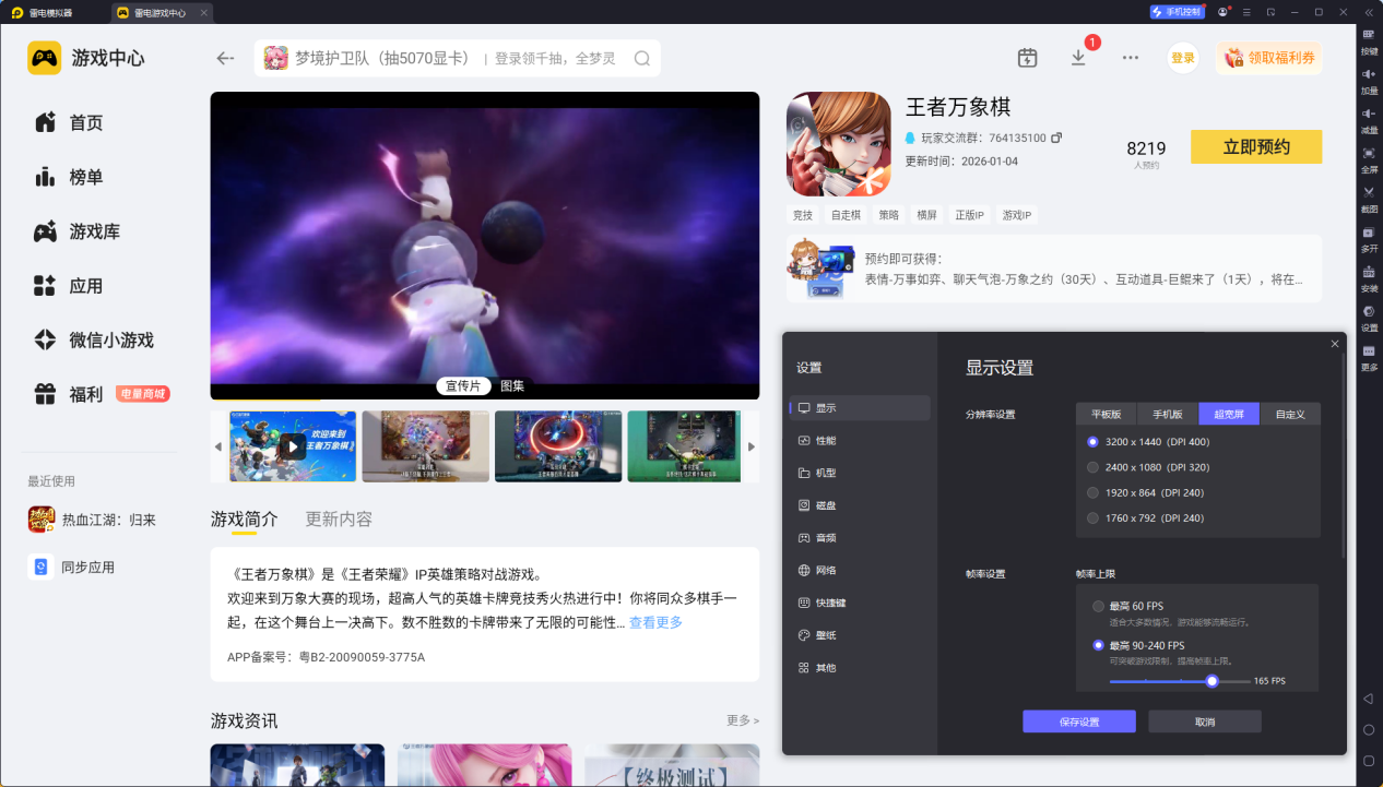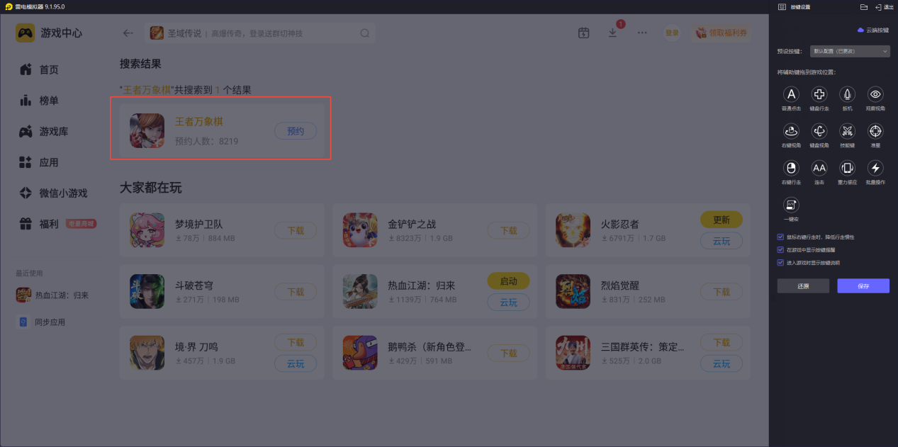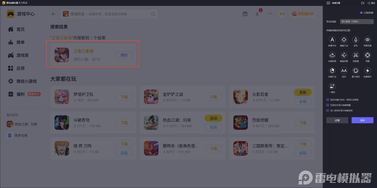 王者万象棋上线后,想要摆脱手机端屏幕小、操作卡顿、续航不足的问题,雷电模拟器是绝佳选择。