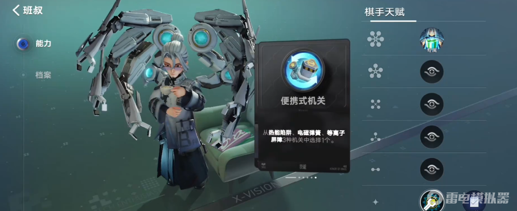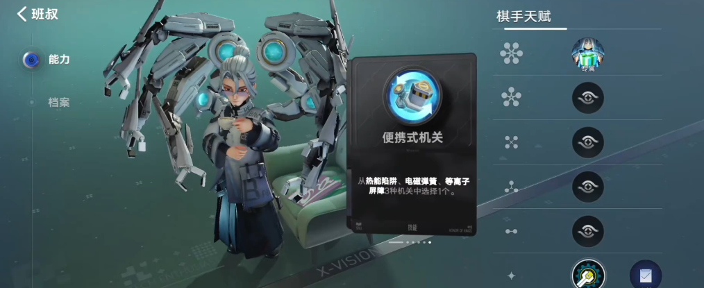 班叔的实战定位并非传统输出或坦克,而是长线运营流派的核心运营支点,其中,三类机关可灵活应对不同阵容与战局,既能通过电磁弹簧打乱敌方节奏,也能用等离子屏障保障己方生存,还能以热能陷阱补充伤害,适配多种阵容搭配思路,无需依赖单一战术。