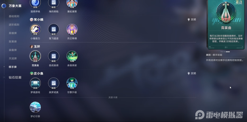 在该游戏的设定中,玩家可以去解锁超多不同的玩法,包括趣味的体验,而且各位可去挑选的英雄卡牌上也非常多,今天就来与玩家介绍王者万象棋玉环,作为机制独特,且有着不错成长上限的英雄,不论是玩法还是出牌组合都是能有不错的表现,本期就针对王者万象棋玉环来为各位详细说明,各位感兴趣就一起来接着往下看看吧。