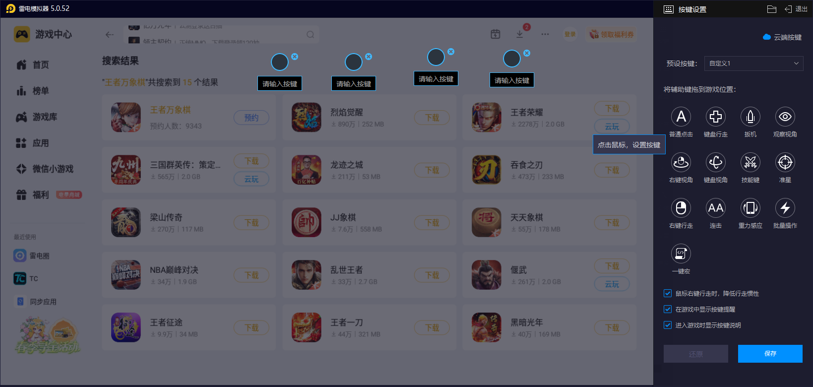 杨玉环的核心玩法围绕每打出3张棋子触发被动展开,需频繁完成棋子选择、拖拽站位、快速出牌等操作,手机触屏易因滑动偏差、误触。而雷电模拟器支持的键鼠自定义映射,可让我们把棋子选择、站位调整、出牌确认等核心操作绑定至键盘快捷键,替代触屏拖拽与点击,避免误触,提升玩家的实际操作便捷性表现。