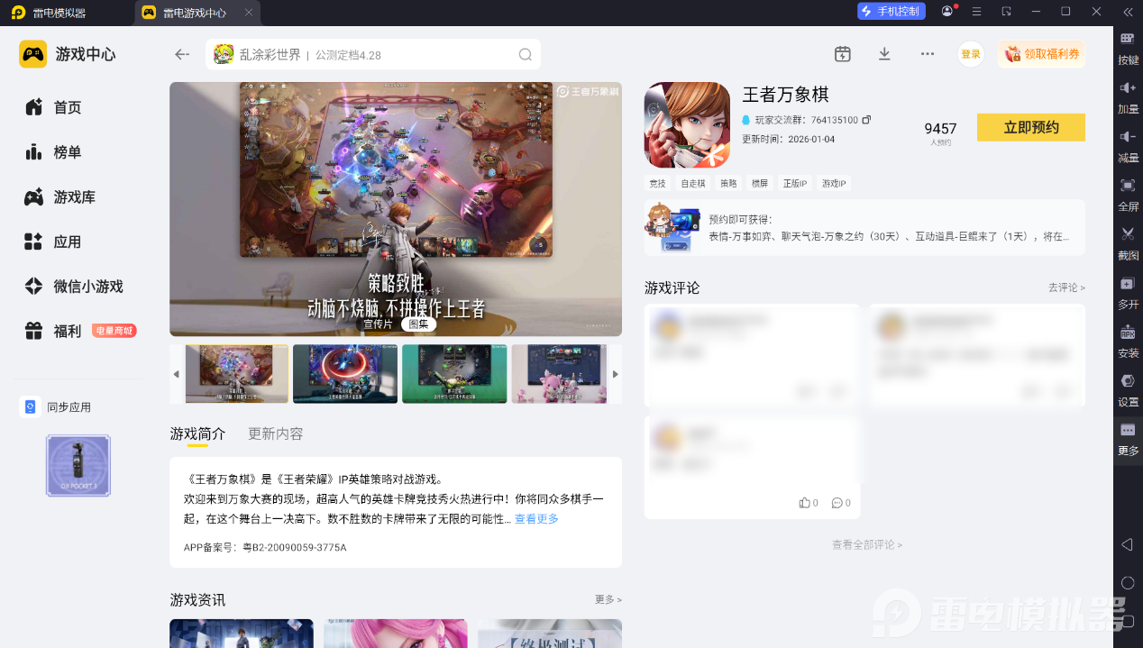 想要抢先体验王者万象棋的策略乐趣,需持续关注官方与合作平台的动态,牢记王者万象棋怎么获得资格的正规渠道。使用雷电模拟器游玩这款游戏,既能获得更优质的画面与操作体验,也能便捷获取游戏预约与测试信息,耐心等待游戏正式上线,即可完整体验这款策略对战游戏的全部内容。