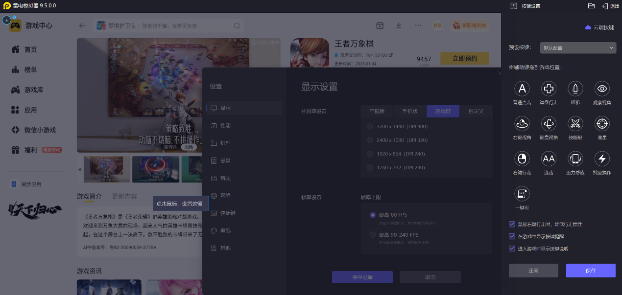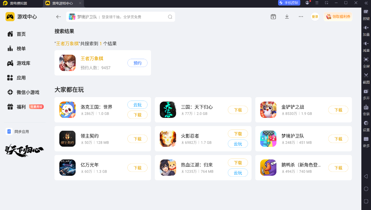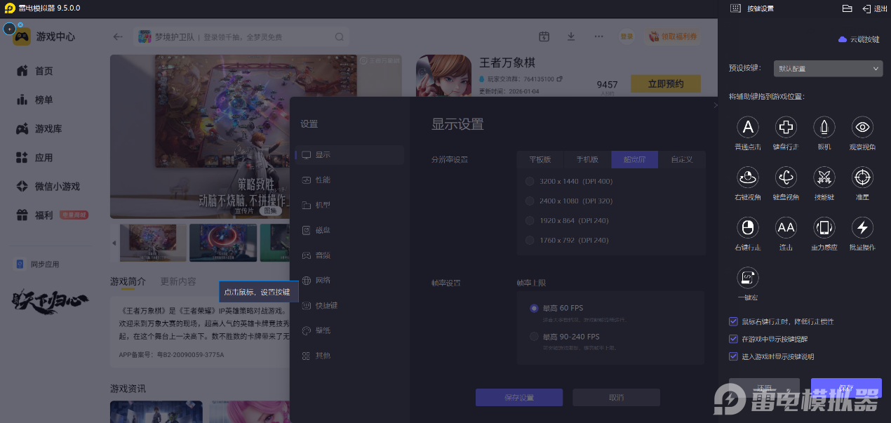 王者万象棋需要频繁完成选卡、布阵、竞拍等操作,雷电模拟器的键鼠配合可大幅提升操作精准度。键鼠操作不会出现手机屏幕触控带来的误触问题,调整英雄站位、触发棋手技能、参与资源竞拍都能快速且准确完成。游戏中需要快速决策的环节,键鼠响应更稳定流畅,能让玩家把更多精力放在策略规划上,减少操作干扰,稳步提升对战表现。