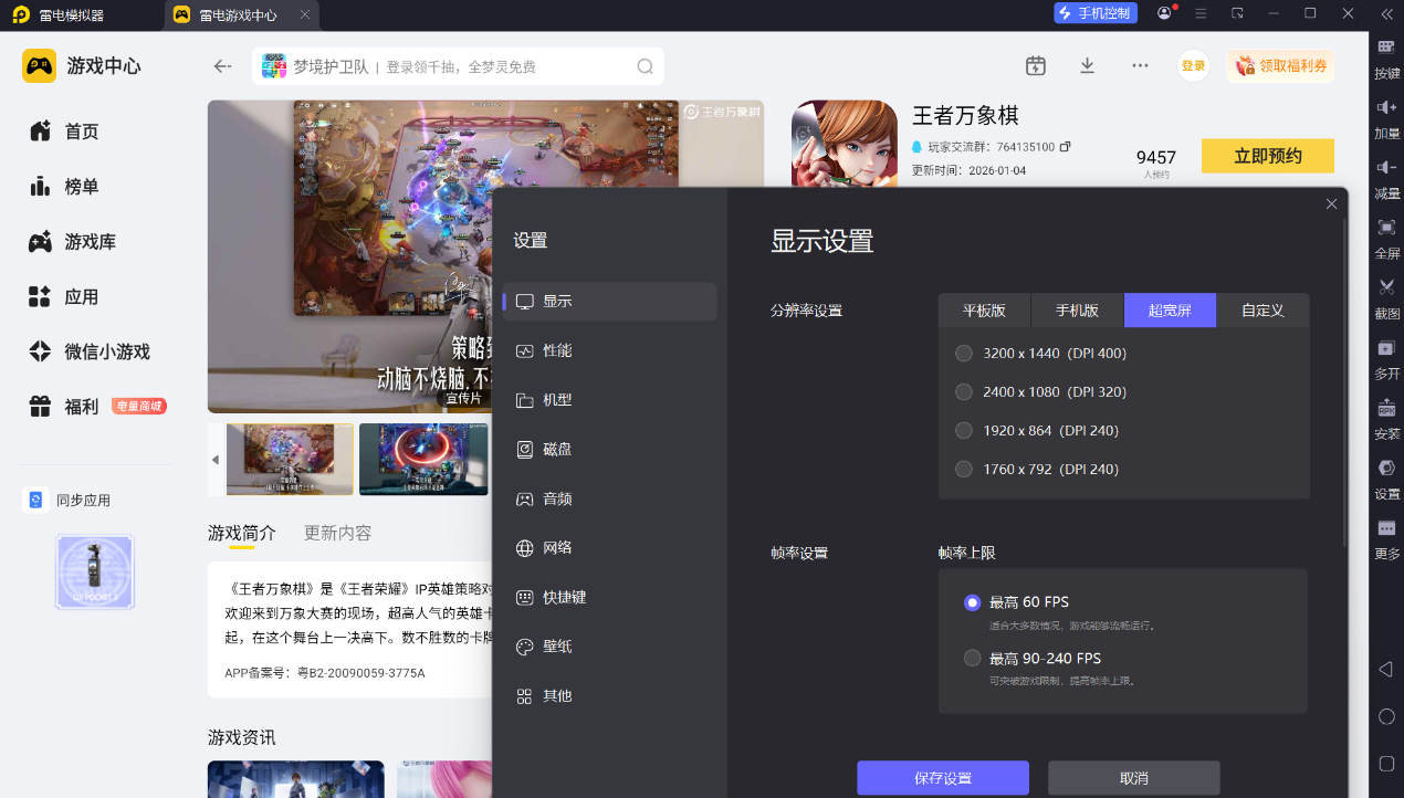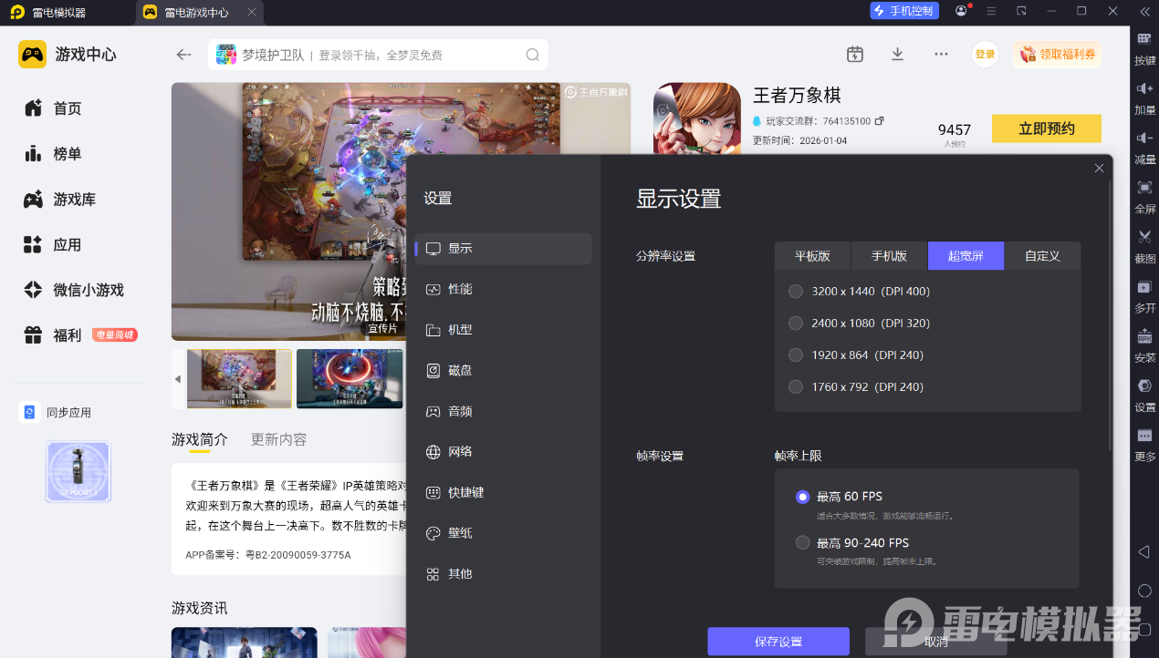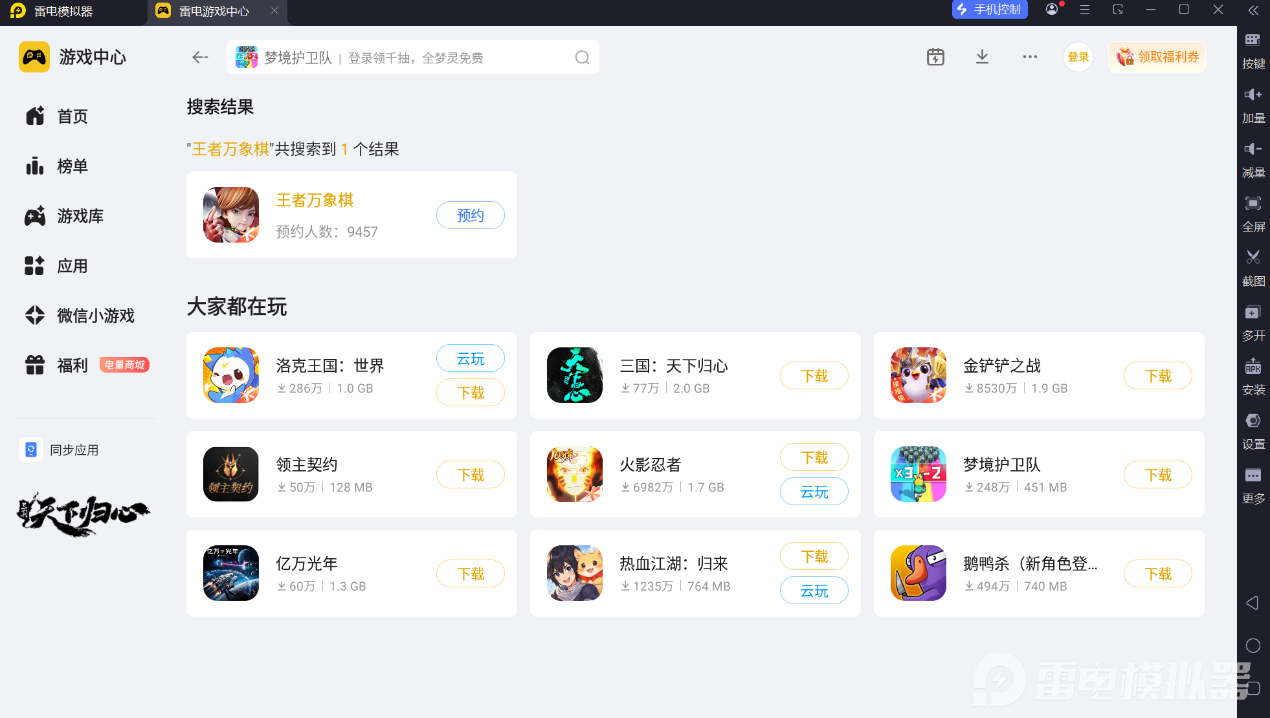 雷电模拟器的超宽屏模式适配王者万象棋的游玩场景,游戏中的英雄立绘能展示更多细节,角色造型与技能特效的呈现更完整清晰。对战时棋盘视野更开阔,界面UI不会遮挡战斗区域与英雄状态信息,观察阵容布局、技能范围和实时对战局势更直观。不管是多人匹配对抗还是单人闯关挑战,超宽屏都能提升视觉舒适度,长时间游玩也不易产生视觉疲劳,让策略判断更准确。