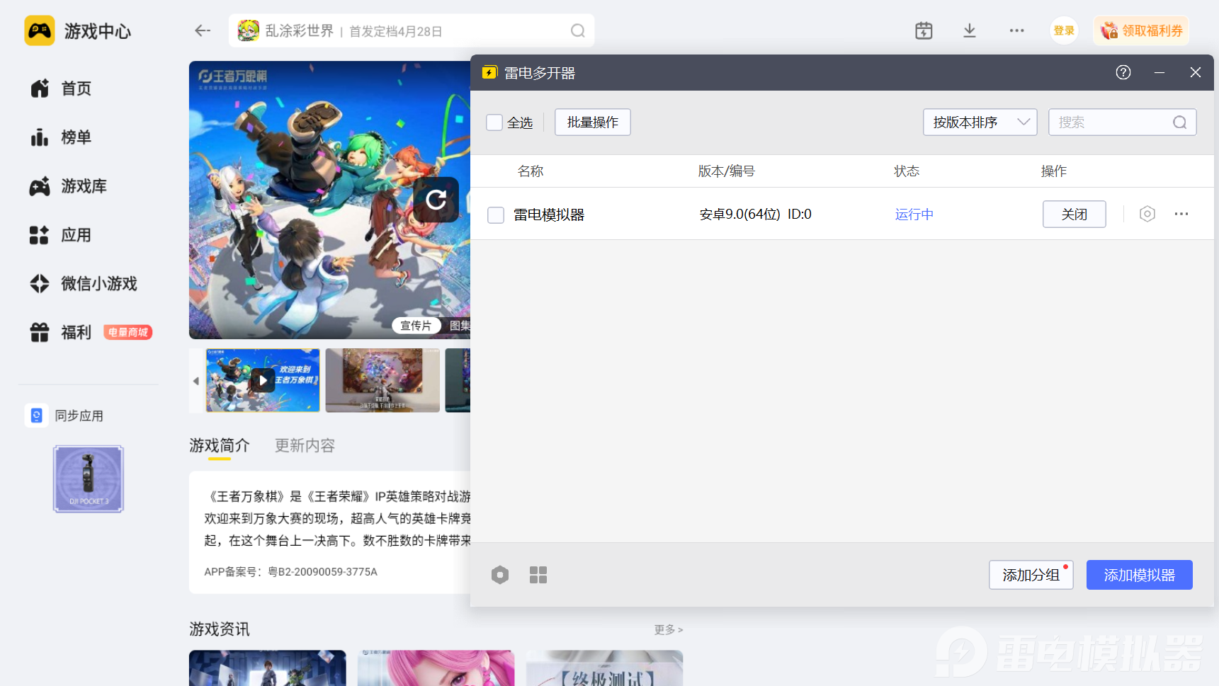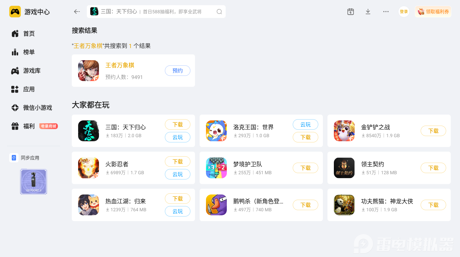 如果各位玩家想要体验王者万象棋的创新型策略战棋玩法,需要先找到王者万象棋预下载的途径。不同的下载入口给各位带来的体验感也有所不同,所以选择正确的王者万象棋预下载入口是十分的重要,那么今天小编推荐使用雷电模拟器进行下载,通过正规的渠道游玩起来也会更加的放心。