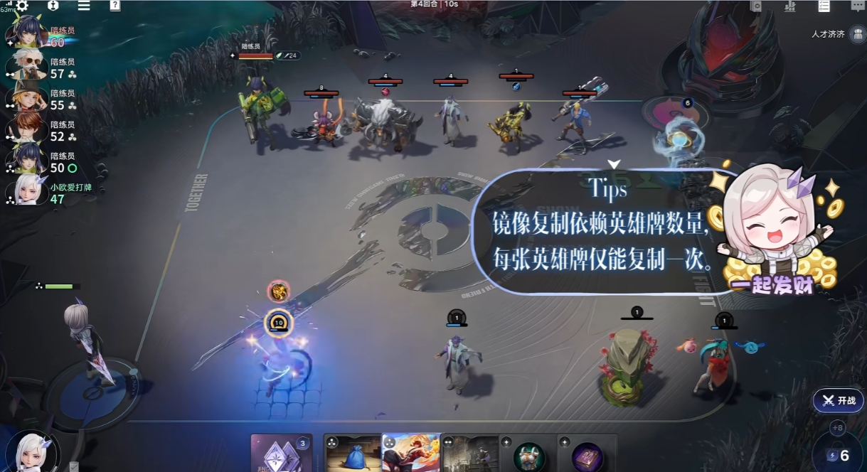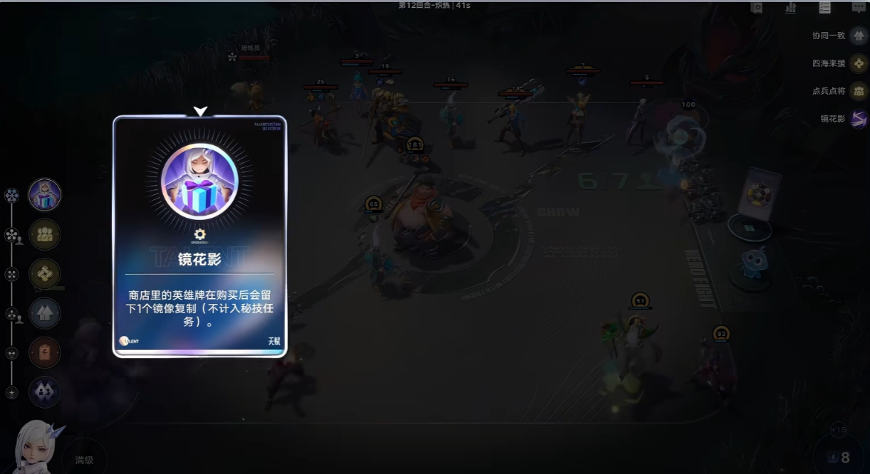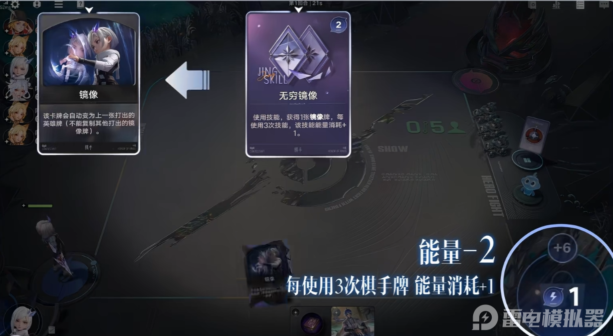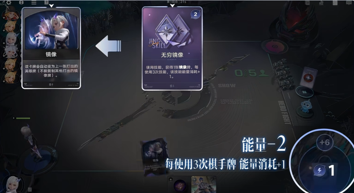 镜还拥有专属天赋加成,在游戏商店中购入英雄牌后,会立即附加1层镜像效果,该效果独立于棋手技之外。触发该天赋后,会直接生成对应英雄的镜像卡牌,无需额外消耗技能能量,也不用占用技能使用次数。前期购入低费英雄卡牌时,就能借助天赋快速积攒镜像卡牌,提前搭建起镜像运营的基础体系,不用耗费额外精力就能积累运营资本。中期购入核心英雄卡牌时,天赋触发的镜像卡能进一步补充核心卡数量,全程稳定提升镜像卡牌获取效率,不用刻意刷取卡牌就能稳步推进阵容成型,全程掌握对局运营的主动权。
