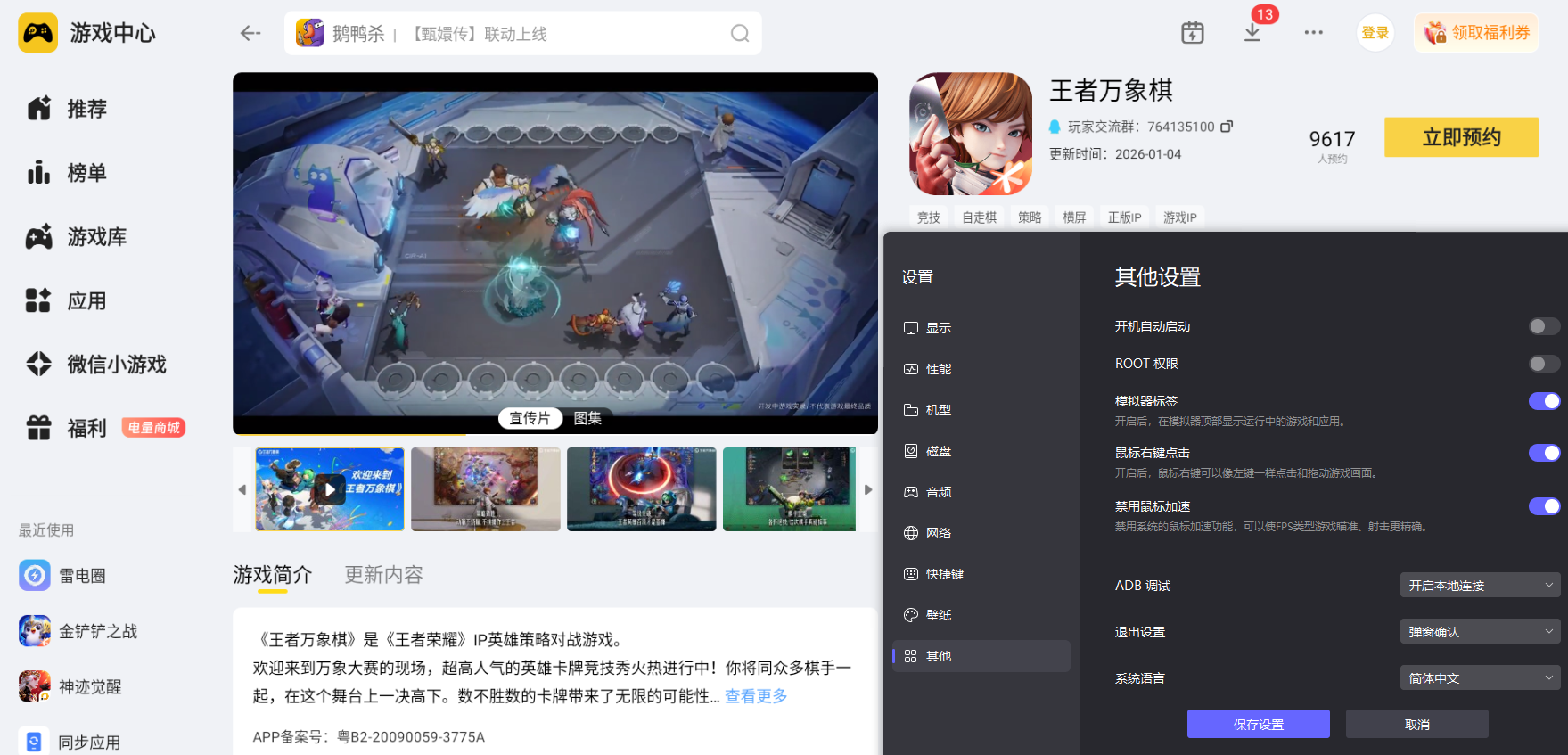 其实,想要更顺畅地体验逐鹿培养核心流的完整乐趣,使用雷电模拟器在电脑上游玩王者万象棋,能带来更为舒适的游戏体验,也更能贴合这套玩法的实战需求。