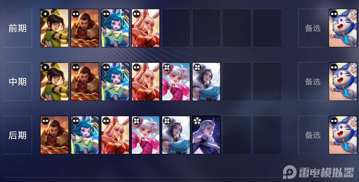前中期玩法思路非常的简单,开局需要选择孙尚香,然后前中期尽量选择培养阿离,当然在七回合之后就可以天剑甄姬露娜以及小乔等角色提升自己的输出能力,对于各位来说最重要的就是在前中期保证自己的血量,尽量取得优势,之后备选梦奇,因为后期换掉它可以获得惊人的奖励,是凑齐完美阵容的必备选择,对于众多用户来说也是非常值得各位推荐使用的,想必大家一定会需要它的。
