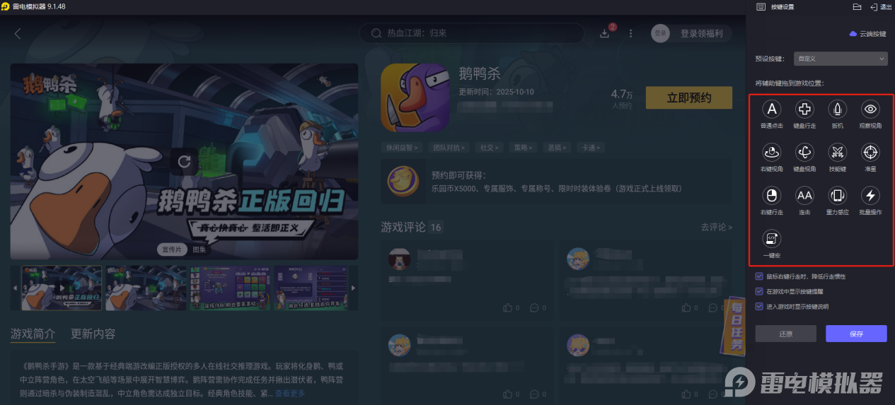 雷电模拟器——鹅鸭杀电脑版的好帮手
