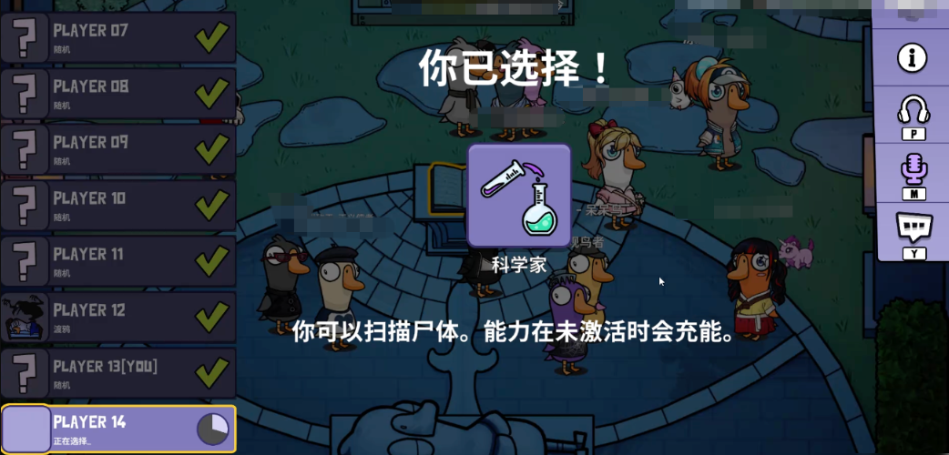 作为队伍重要的信息位,开局我们首先要抱团以保障自身安全,当有其他玩家被杀并触发警报时,就可以启用技能锁定尸体周边的嫌疑人,通常坏人鸭动刀后不会跑太远,依据这一信息对被害者附近的人员进行询问。