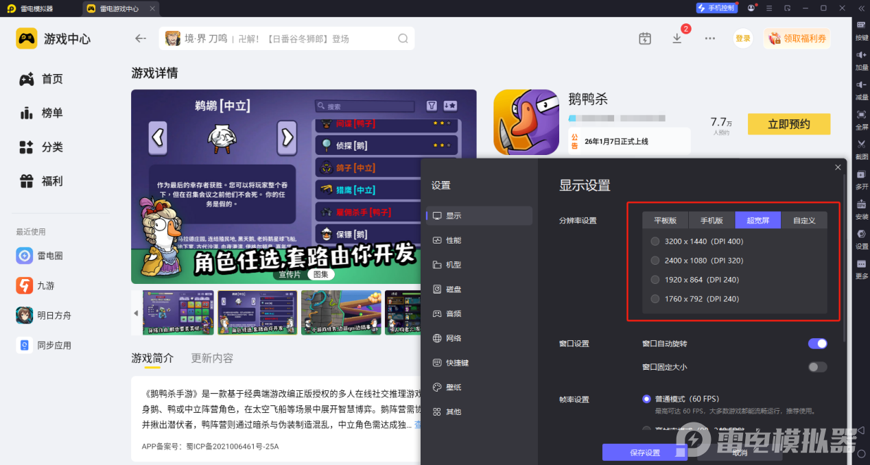 雷电模拟器——鹅鸭杀电脑版的好帮手