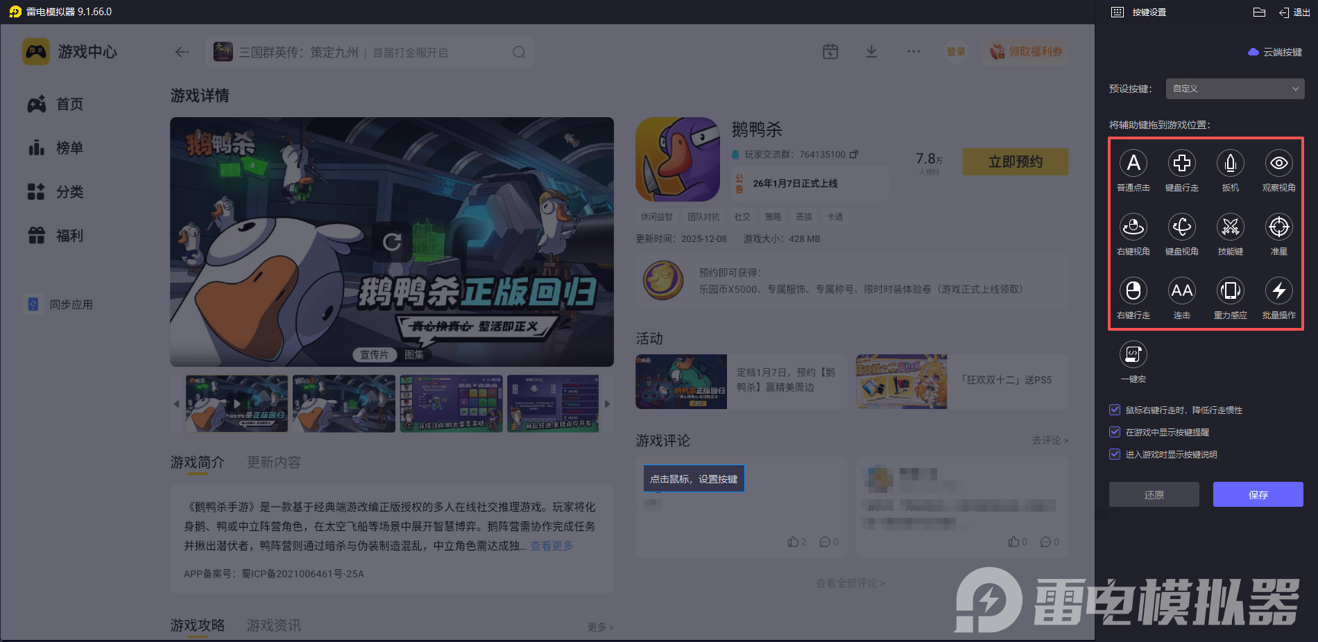 雷电模拟器——鹅鸭杀手游电脑版的好帮手