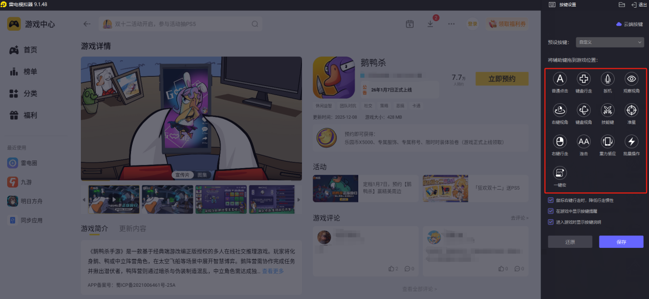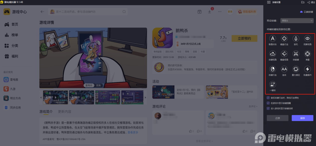 相信看完以上攻略,大家都对鹅鸭杀刺客技能有所了解。当然,要更好体验游戏自然少不了雷电模拟器。
