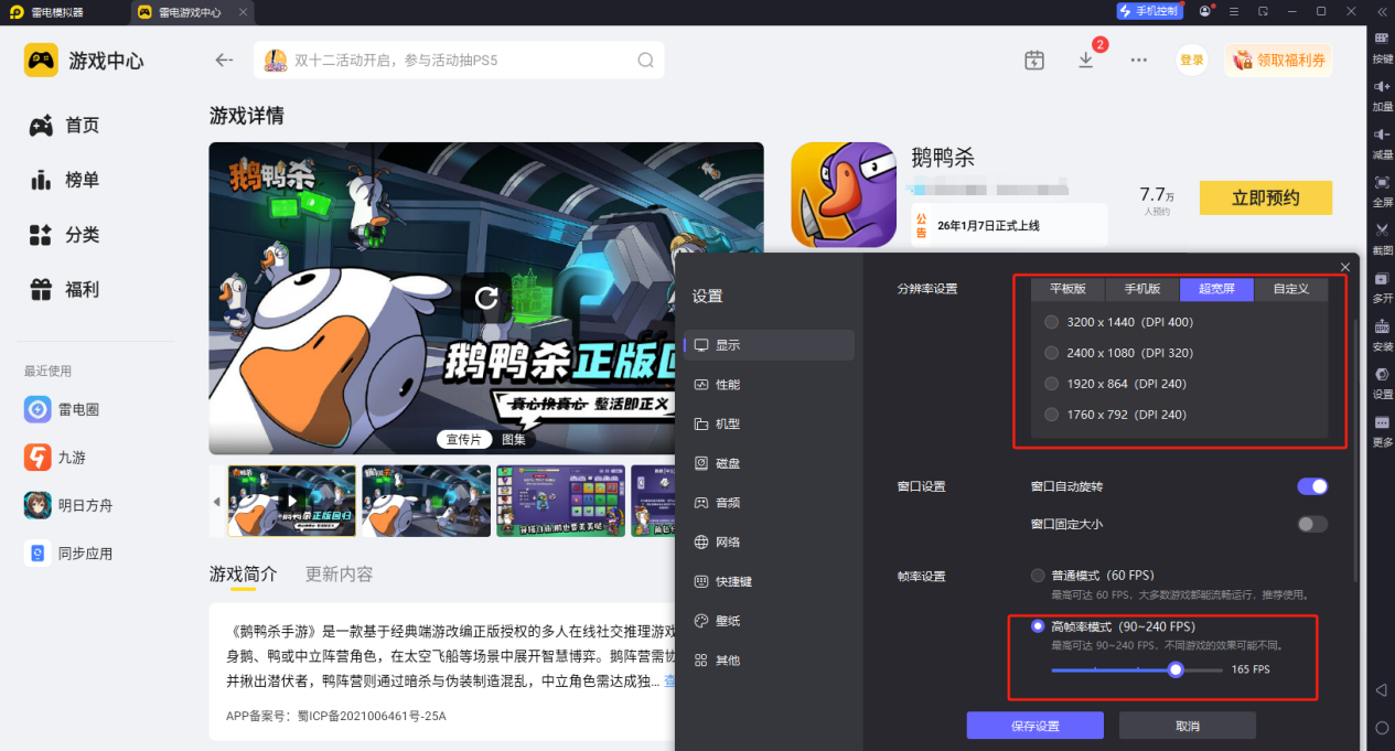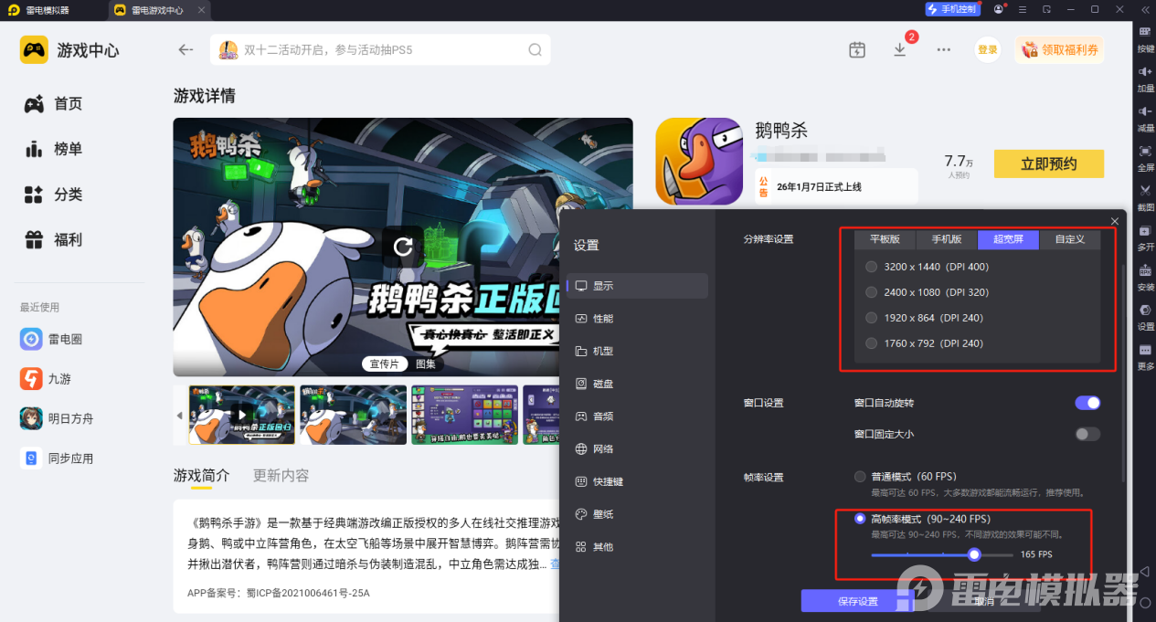 若想更清晰地查看地图的细微之处,雷电模拟器能提供助力。其出色的屏幕适配功能与可灵活调节的分辨率大小,能完美呈现鹅鸭杀暗黑风格地图的精致之处。再加上高帧率模式,让地图切换、视角转动等操作毫无阻碍,顺畅无比,彻底解决手机操作时常见的卡顿问题。