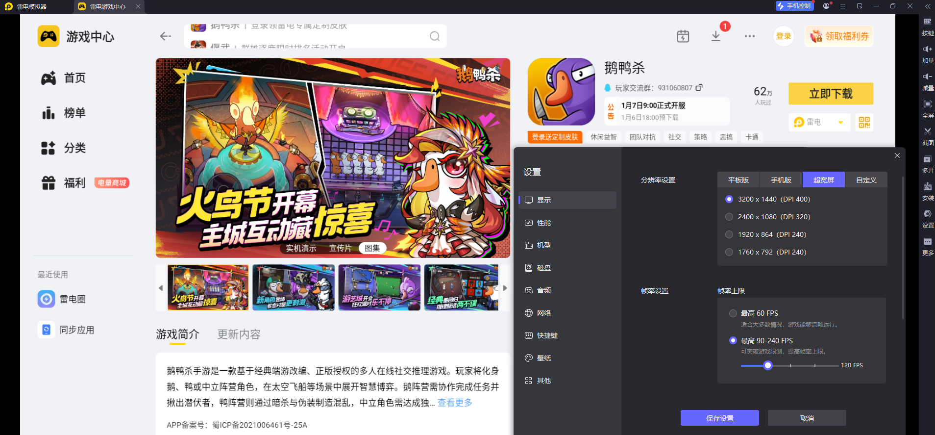 好了,鹅鸭杀手游端游互通吗就给大家介绍到这里啦。如果你既想享受手游的便捷,又想要端游的操作和画面质感,用雷电模拟器玩《鹅鸭杀》手游绝对是绝佳选择,赶紧邀上朋友一起开启欢乐推理吧。