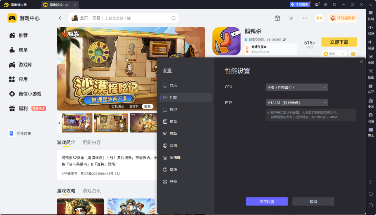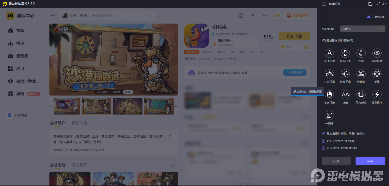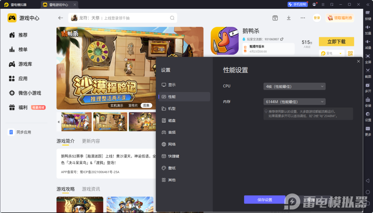 雷电模拟器——鹅鸭杀电脑版的好帮手