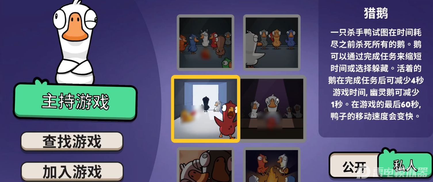 鹅鸭杀手游猎鹅是脱离鹅鸭杀经典推理玩法的特色模式,和主打身份博弈的经典局不同,鹅鸭杀手游猎鹅更侧重纯粹的追逐与生存,不用费脑盘逻辑、猜身份,鹅鸭杀手游猎鹅的核心就是简单直接的对抗,不管是新手还是老玩家都能快速上手。想更尽兴地体验这种紧张感,用雷电模拟器在电脑上操作,能解锁更舒适的游玩体验。