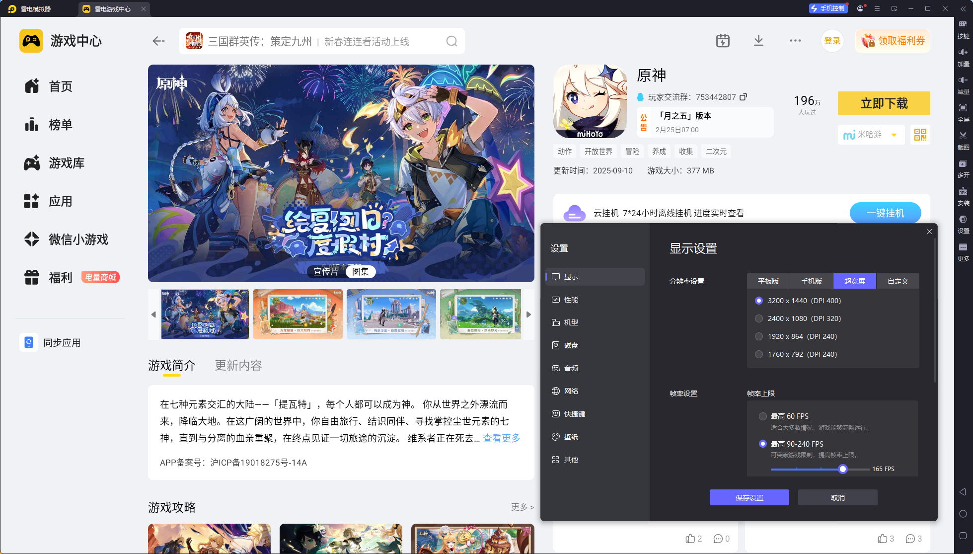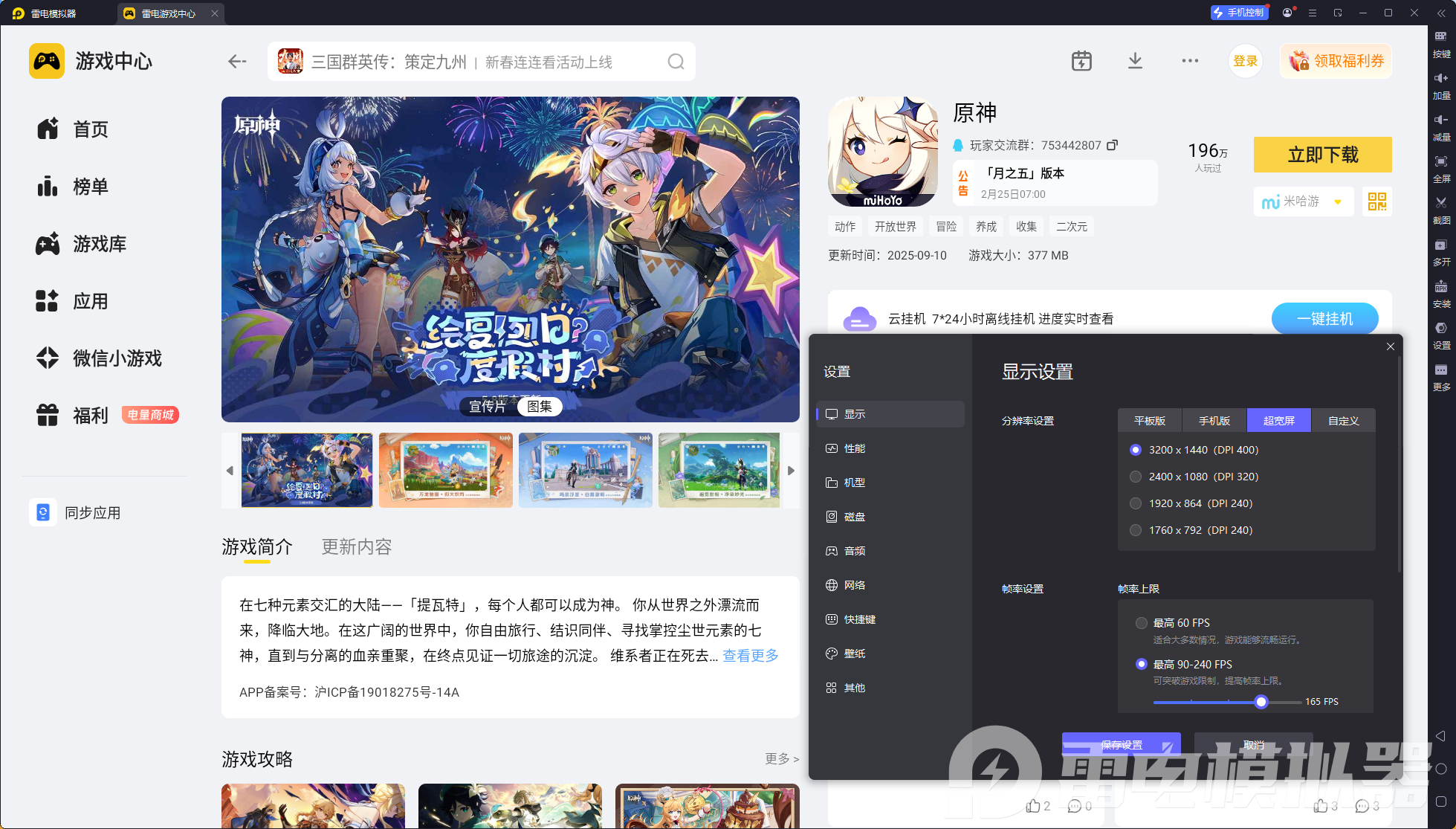 雷电模拟器 —— 原神电脑版的好帮手