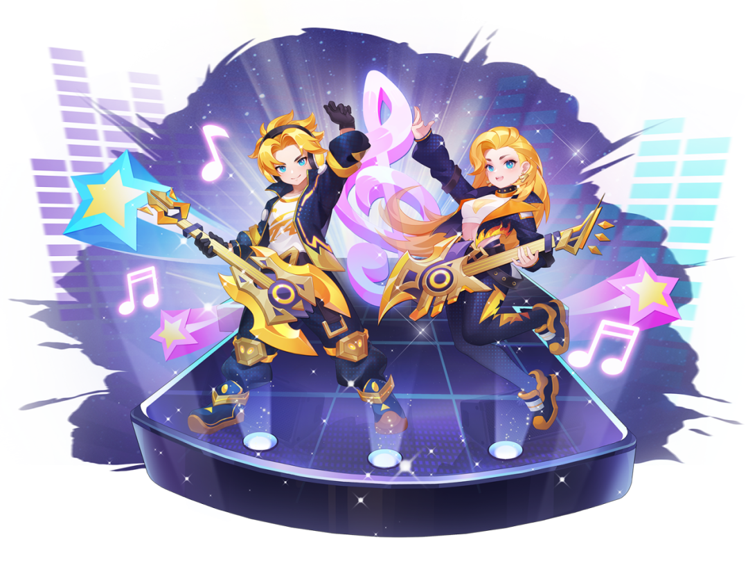 攻击状态下,本该弹奏的吉他瞬间成为黄金战斧,用力向前一锤,吉他落地的瞬间,仿佛是伤害爆炸的开始!