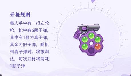3.惩罚为一把带有6颗子弹的左轮老式手枪,其中有1颗真子弹,被真子弹打中后淘汰
