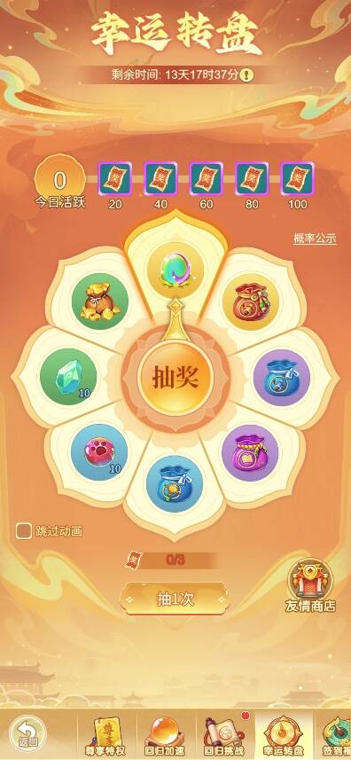 2.活动期间,可通过完成回归挑战任务获得幸运转盘抽奖券