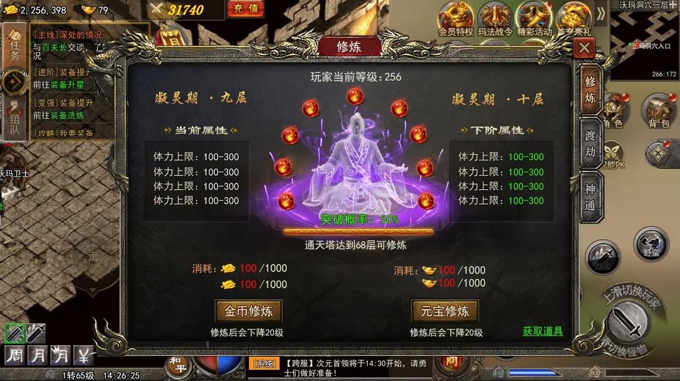 带你领略磅礴仙气,感受无与伦比的修仙之旅 新系统即将上线,先睹为快 全新系统 全新地图 梦游仙境,飞往天宫仙境,挑战玉兔BOSS,与仙子畅谈,大量宝藏等你探索,法器携身强力翻倍,全新属性,全新大陆,全新地图,全新装备 全新怪物,装备 三千大道,唯渡劫者能成龙变凤,没错高手渡劫修炼成仙。这一次渡劫修炼不仅是一种考验,更是一次蜕变,就问你们期待不期待