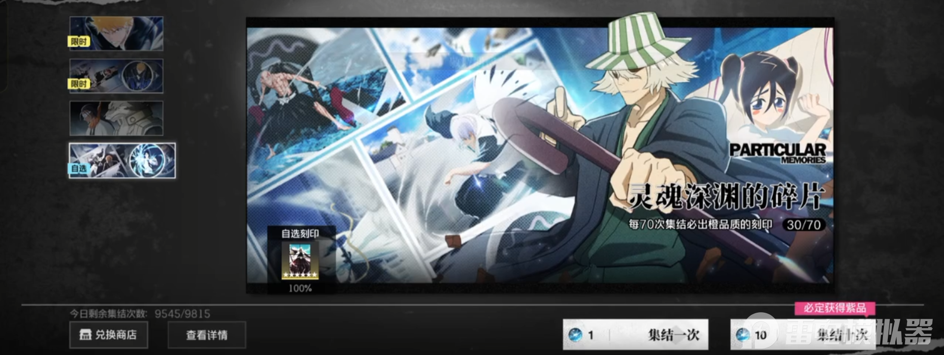 其中角色池方面,常驻池80抽保底黑崎一护、朽木白哉等SSR角色,限定池可获取万解一护、更木剑八等版本强势角色,建议攒够保底次数再抽取,新手前期优先抽常驻池填补阵容空缺,中期可根据活动转投限定池,还可关注角色UP轮换(如黑崎一护“天锁斩月”形态概率提升时抽取,以增强推图效率)。