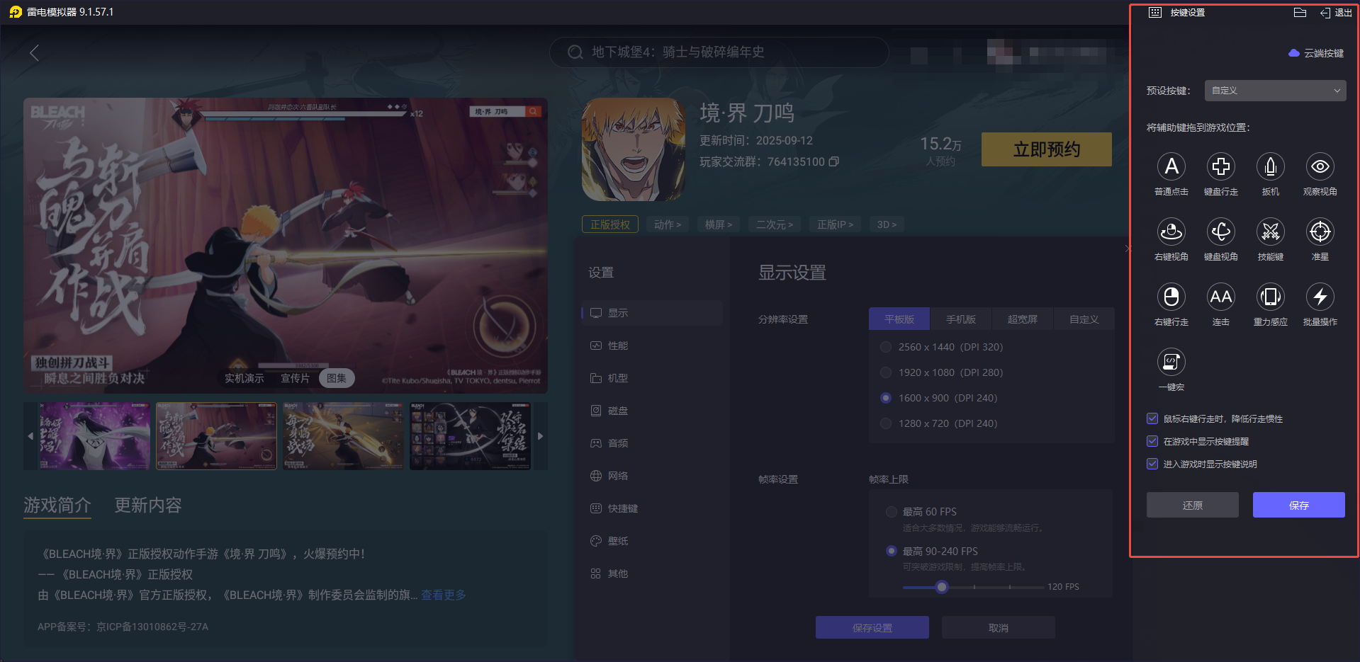 面对黑崎一护月牙天冲接天锁斩月的高难度连招,你可以在雷电模拟器自定义设置宏按键,大幅提升你的释放精度,告别手动失误。