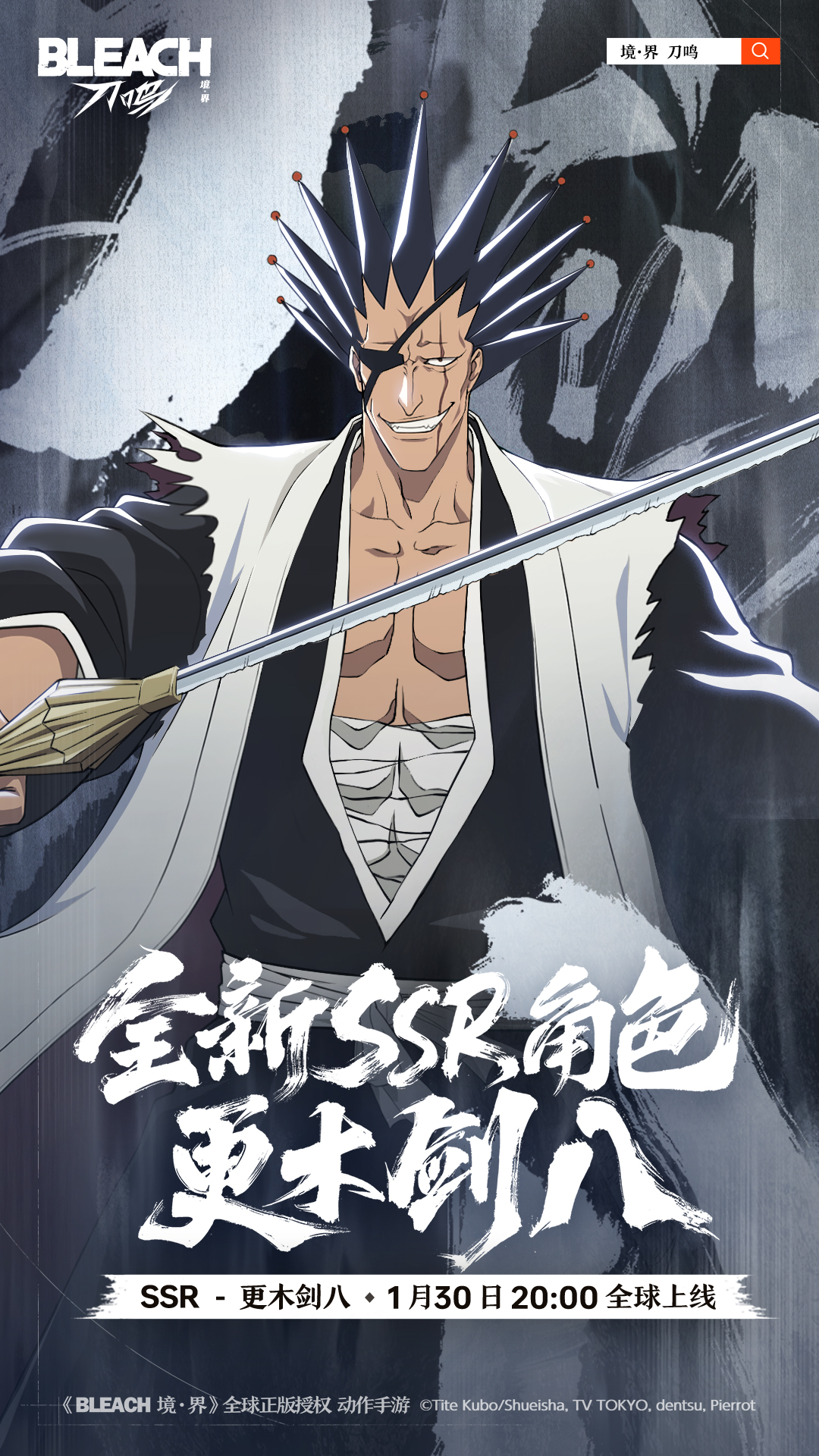 全新SSR角色「更木剑八」即将于1月30日20:00正式上线!