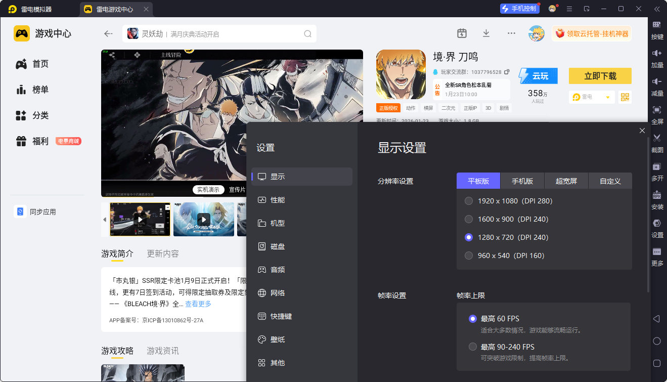 雷电模拟器优化了游戏运行环境,让境界刀鸣在电脑上运行更加流畅。即使同时开启多个账号或运行其他大型程序,也不会出现卡顿或掉帧现象,确保更木剑八的每一次挥刀都流畅自如。
