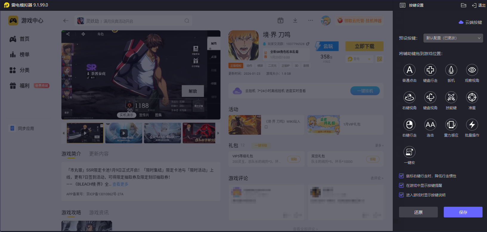 境界刀鸣更木剑八技能的释放需要精准的操作和快速的反应,而雷电模拟器的大屏优势和键鼠映射功能,能让玩家更清晰地观察战场动态,精准释放技能。