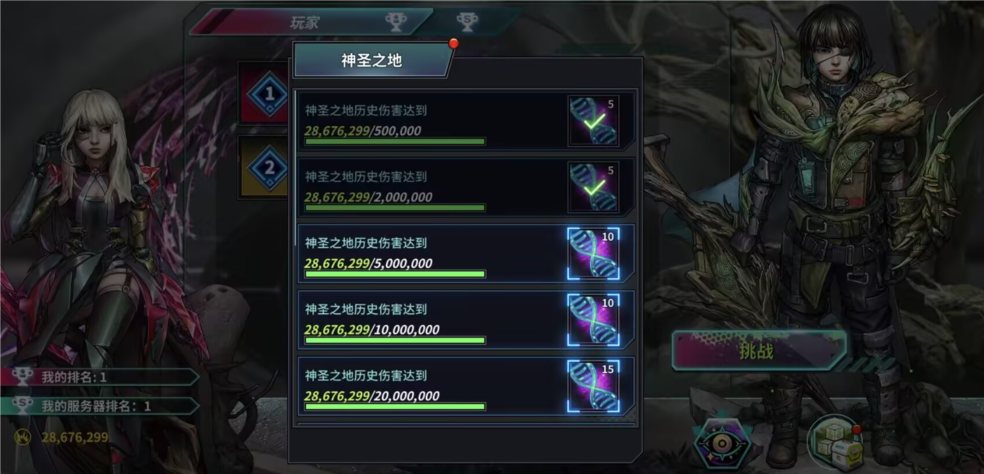 2.7.神圣之地挑战可无限重复挑战,不受英雄状态影响,只取历史最高伤害,神圣之地挑战伤害达到一定档次可以领取对应奖励。(活动期间只可领取一次)