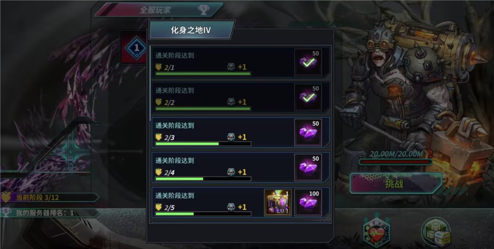 2.4.化身之地挑战为渐进式的,当当前阶段伤害达到要求即可通过该阶段进入下一阶段,可重复挑战,伤害累加。