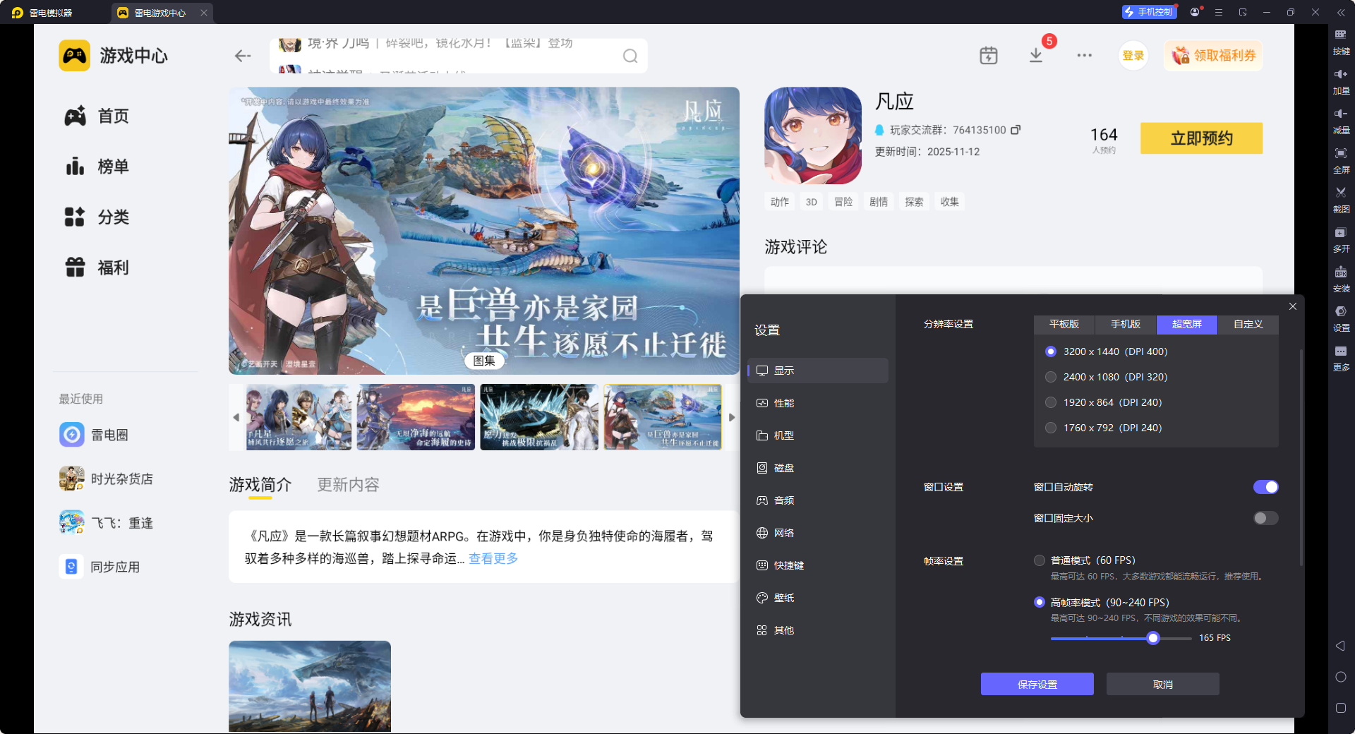 如果大家想看清万乘国的生物朋克场景和精细建模,用雷电模拟器呈现会更惊艳。模拟器支持4K分辨率和165稳定帧率,能清晰展现万乘国机械装置的纹路、荧光虫群的光影变化,还有角色皮肤的细腻质感。超宽屏显示模式还能拓宽视野,让你在探索万乘国的箱庭地图时,提前发现隐藏路径和资源点,不会错过任何与这个科技国度相关的细节。