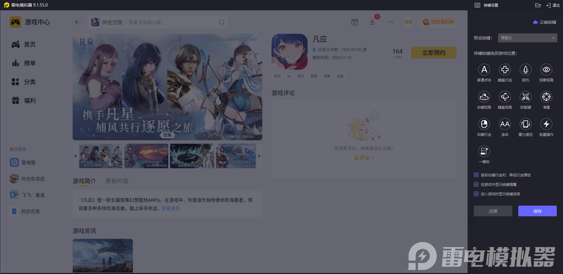 万乘国的战斗需要频繁切换武器、释放组合技能,还有极限闪避等精准操作,雷电模拟器能让这些操作更顺手。它支持键鼠自定义映射,可将移动、攻击、技能等绑定到熟悉的按键,彻底告别触屏误触的问题。复杂的连招还能设置一键宏,轻轻一按就能触发,哪怕是新手也能在万乘国的战斗中轻松打出流畅操作,应对BOSS战和探索挑战都更从容。
