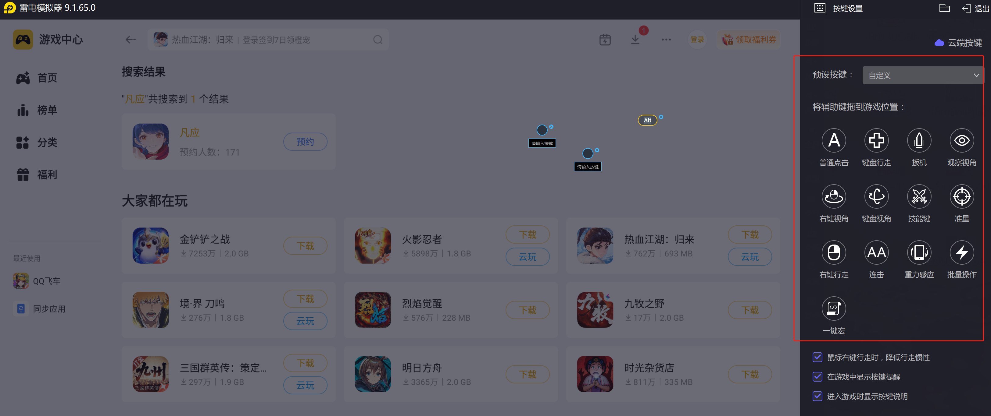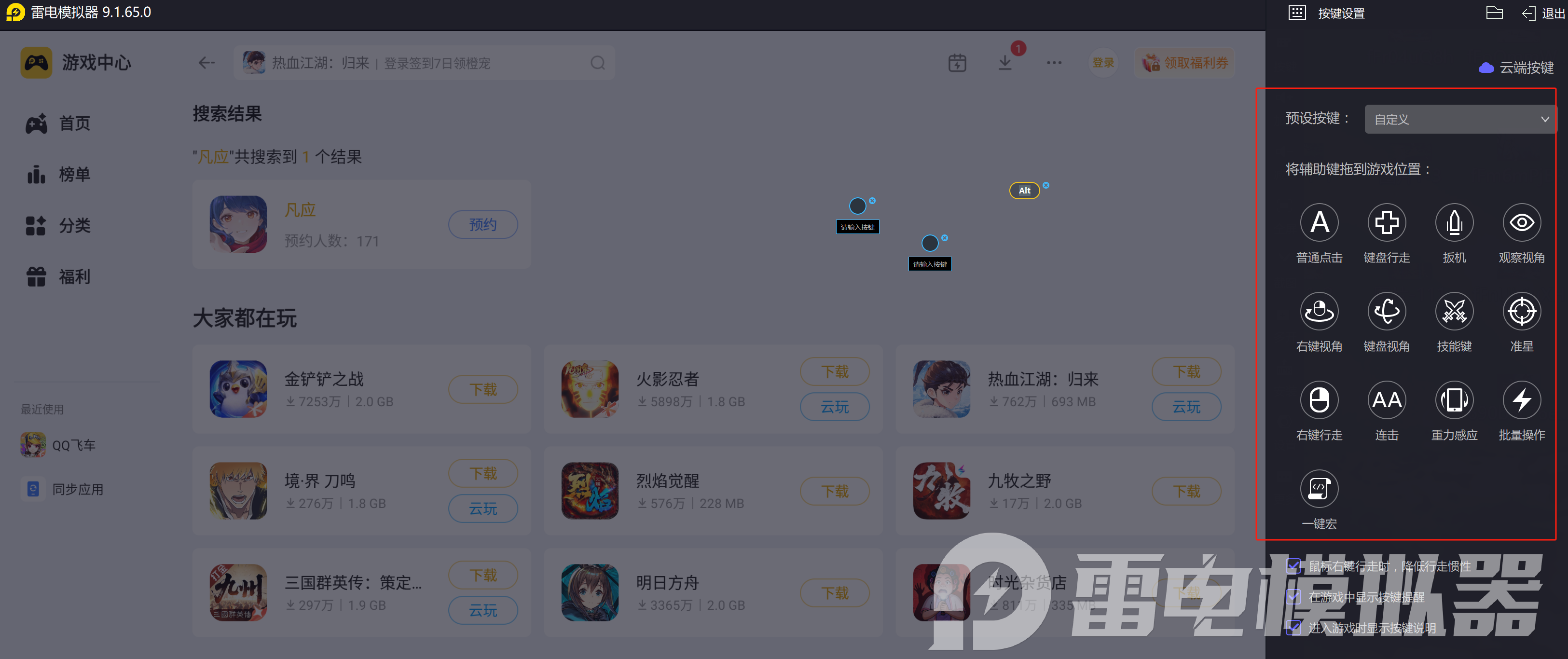 1、按键自定义功能:总的来说,珂林的所有技能,都是以火属性为核心而展开的。如果我们想更好的体验这些技能,就一定要使用雷电模拟器来玩凡应,通过它的按键自定义功能,根据自身习惯,对不同的按键,进行调整和设置,直至用起来顺手为止,为我们发挥珂林技能做准备。