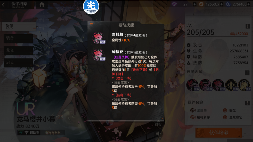 ②5白帝+1利维坦3:带利维坦3跟白帝光触发双平A增加追加概率,这套主要还是便宜,性价比高,多动更快的叠出红莲凤舞给主C额外行动回合,龙马樱井小暮本身自带大量的异常命中无需龙纹再给的异常命中,所以白帝套的多动和叠盾保护自己主C很适合她。