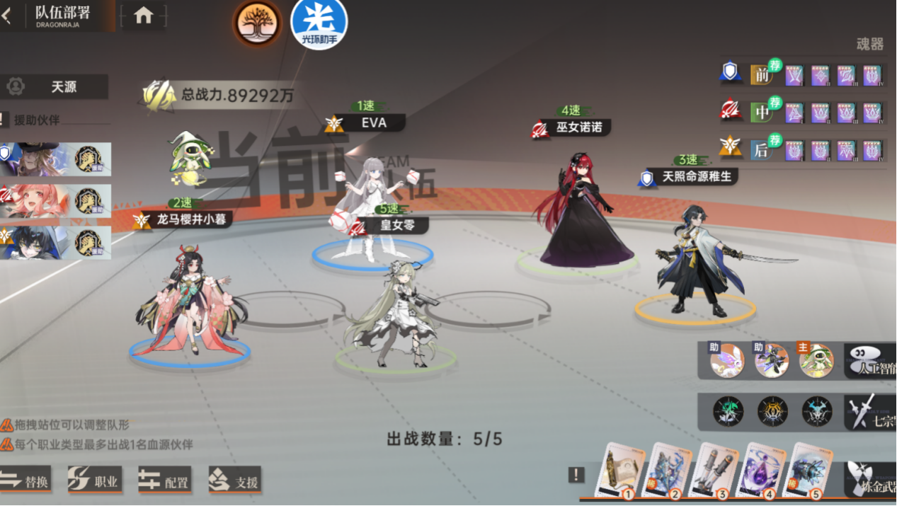 后排:EVA(增益回灵)+ 龙马樱井小暮(驱散强化效果)