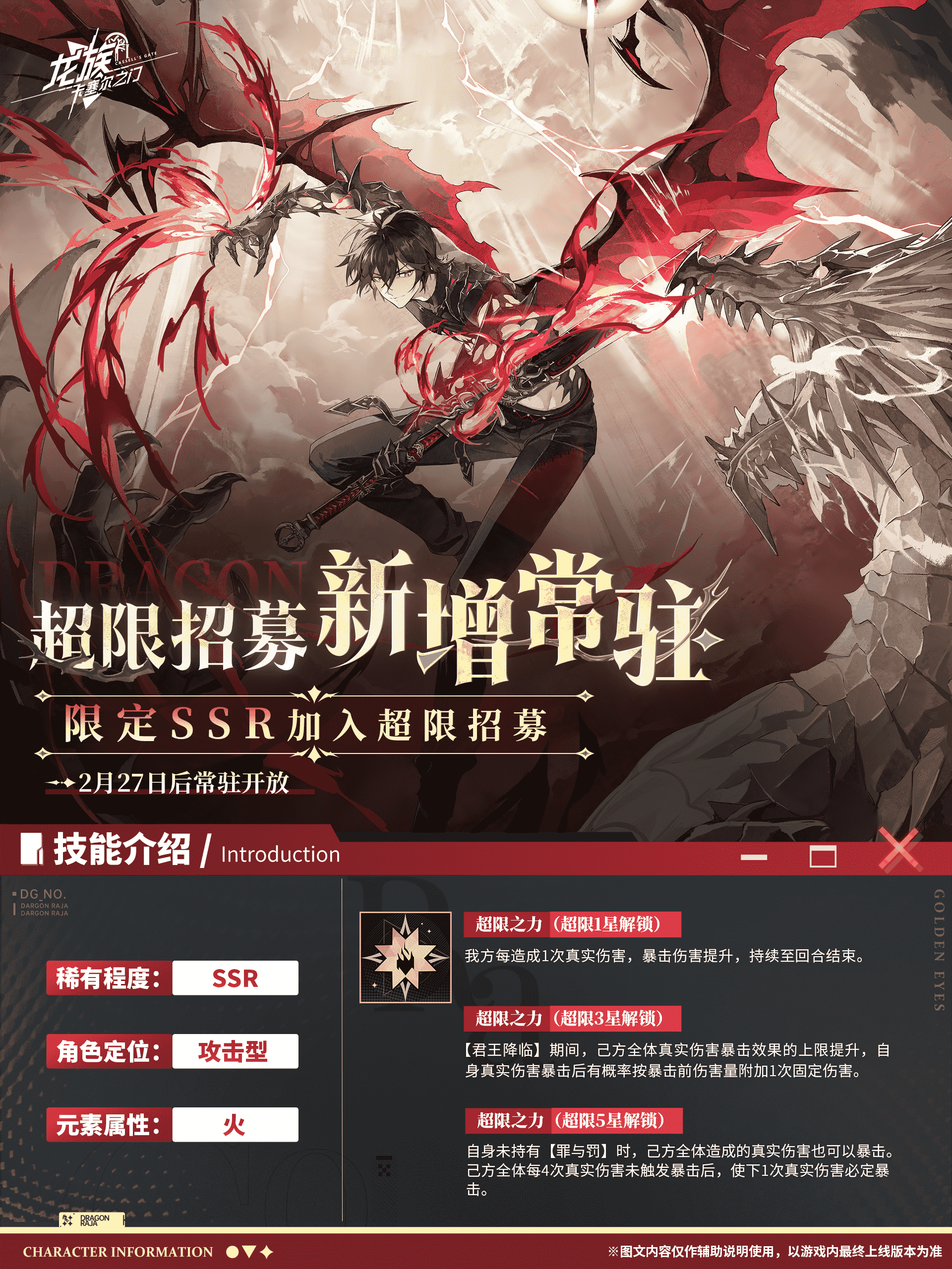 亲爱的专员,SSR伙伴「弑罪路明非」即将于2月27日加入超限招募!