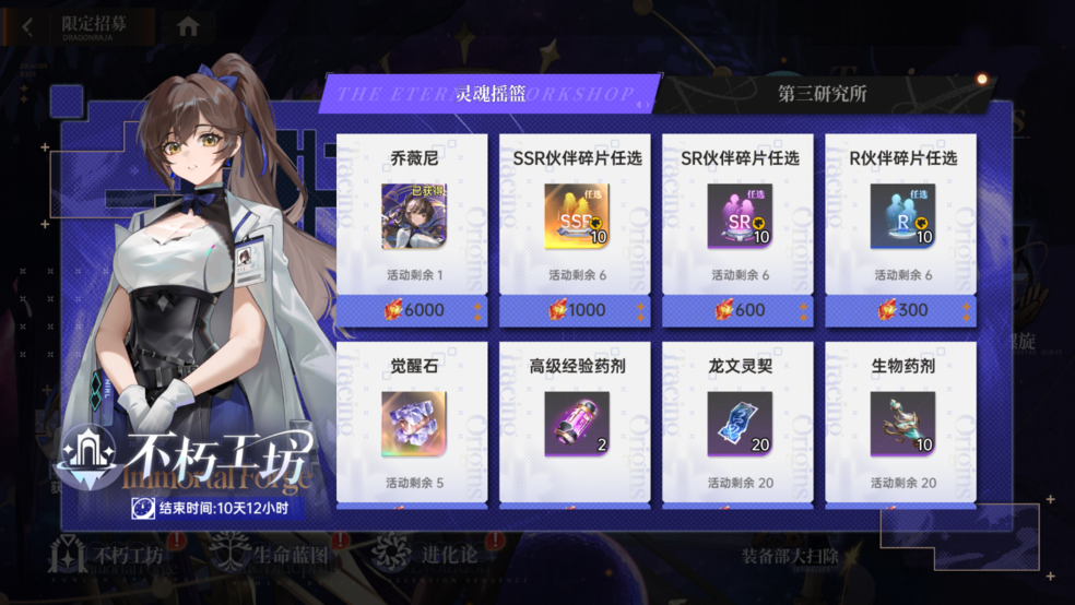 活动期间,专员可使用「限定招募券」招募全新伙伴「乔薇尼」,招募达到指定次数,不仅有「SSR限定伙伴任选」、「SSR全光暗龙文任选」等超值好礼赠送,更有全新「专属启灵自选-真理之瞳」 等你领取!