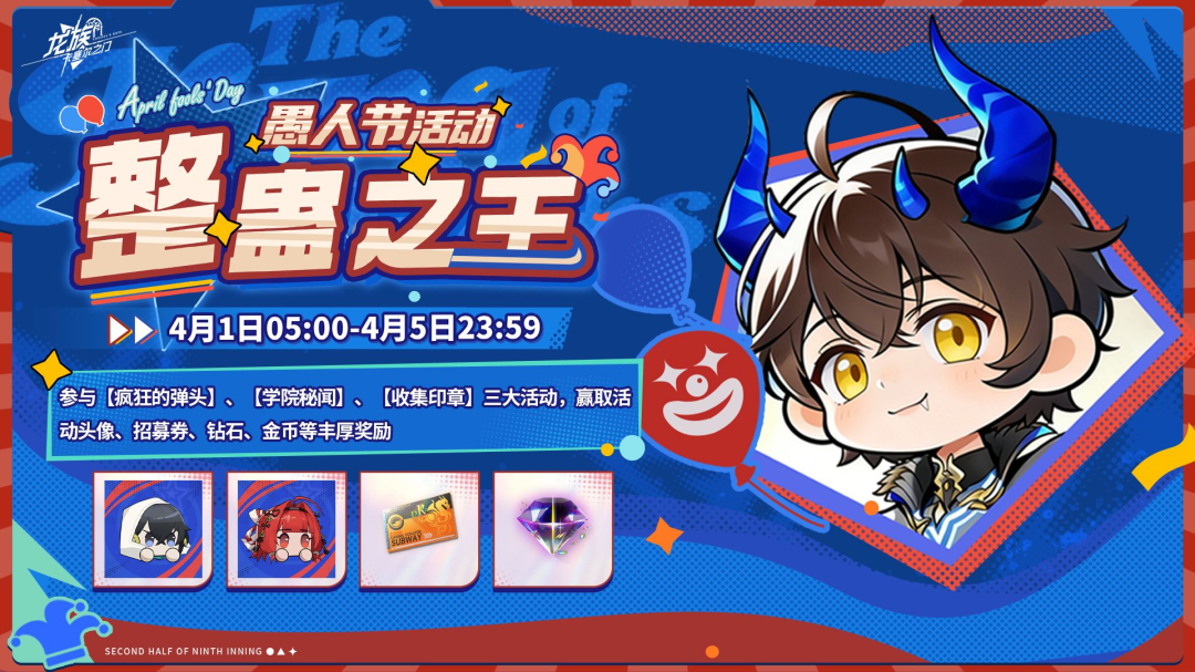亲爱的专员,全新趣味活动「整蛊之王」现已开启!活动期间,参与「疯狂的弹头」、「学院秘闻」、「收集印章」三大趣味任务,即可赢取活动头像、招募券、钻石、金币等活动奖励!整蛊狂欢,惊喜不断,今年的“整蛊之王”就是你!