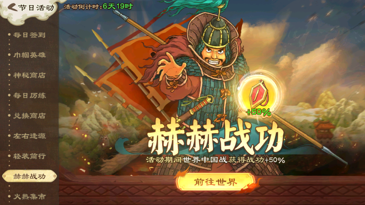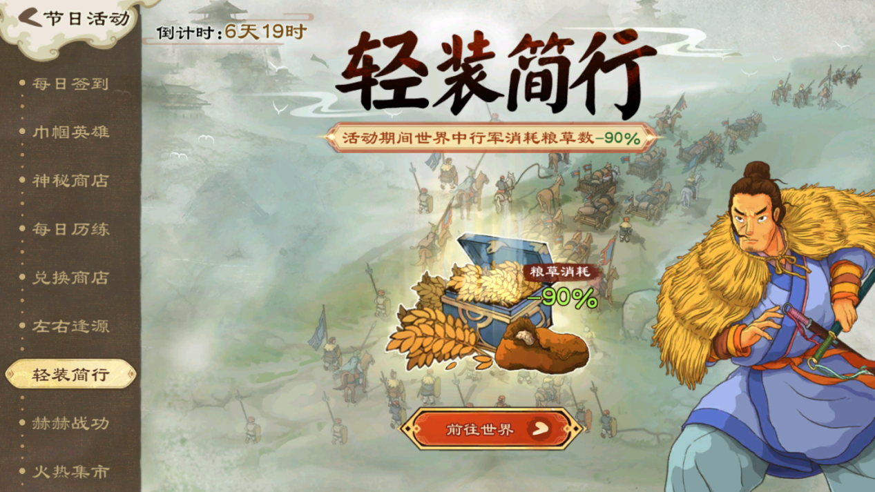 活动期间,世界中行军可减少粮草消耗数