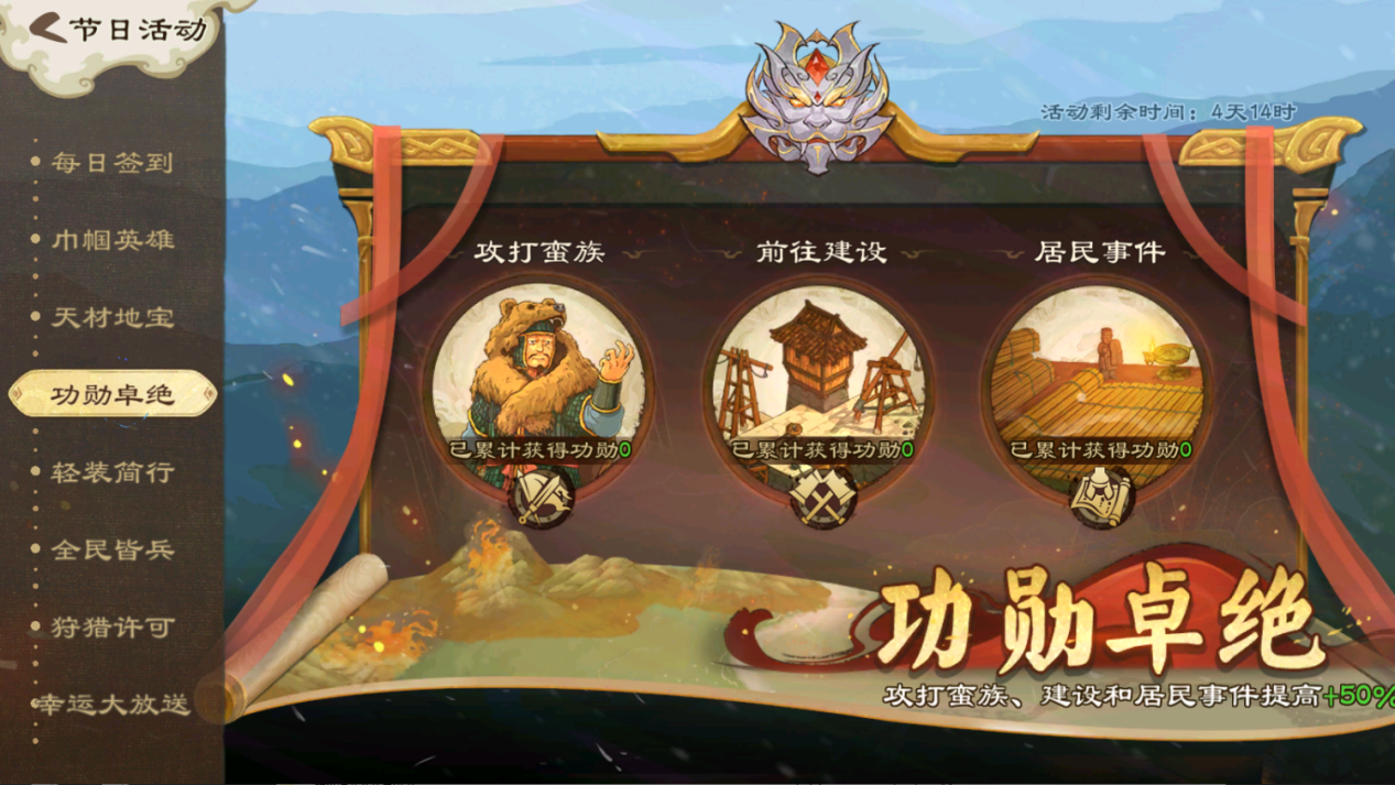 活动期间,攻打蛮族、建设城池、