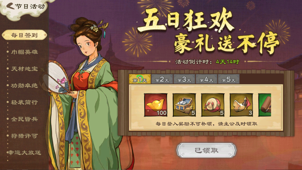 活动期间,每日登录可领取丰富奖励