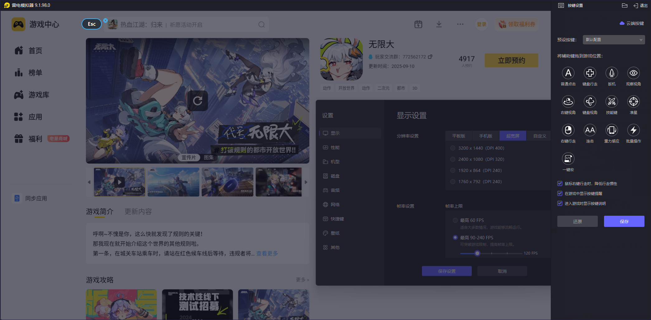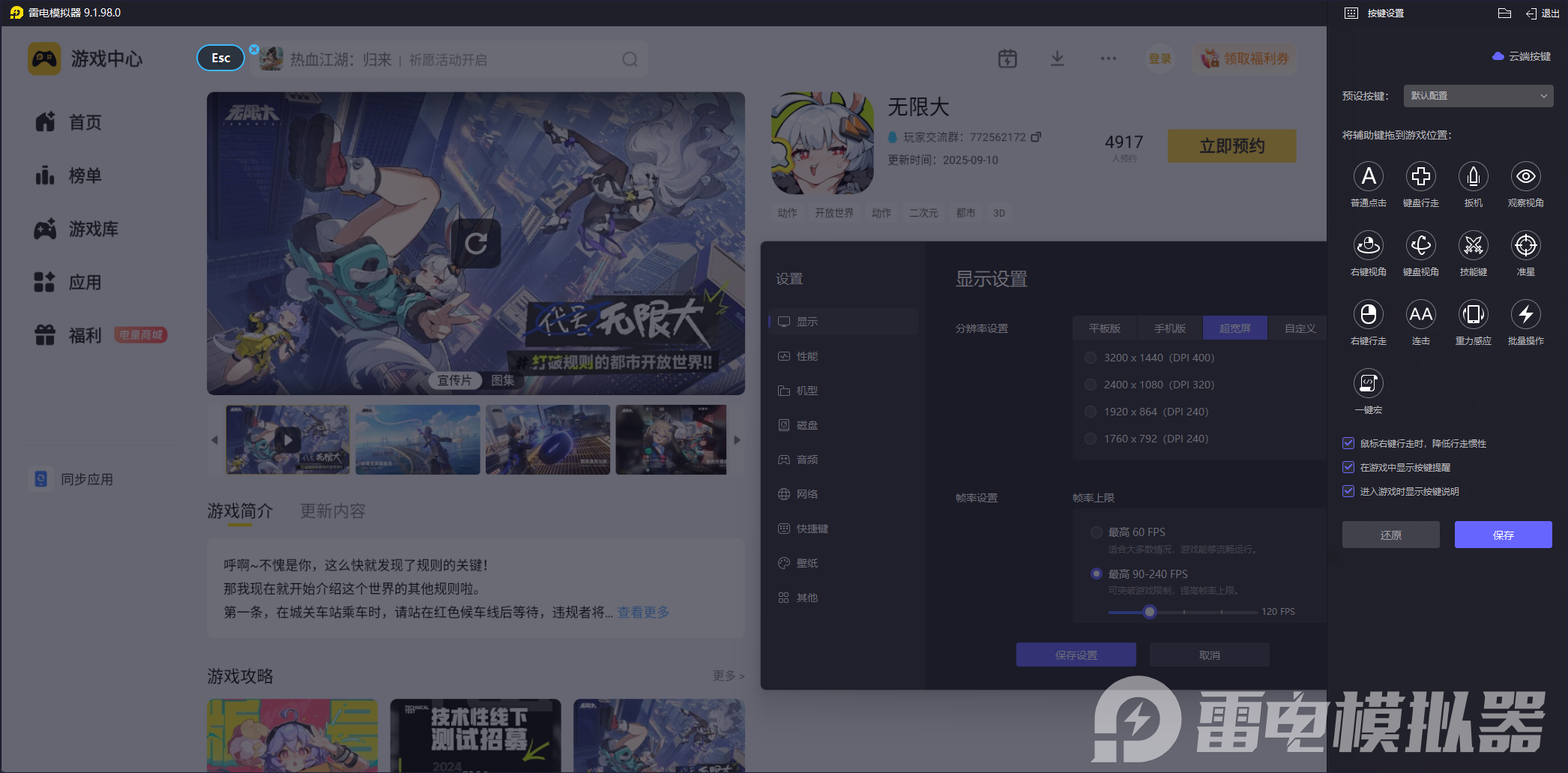 对于期盼无限大公测、渴望解锁极致都市开放世界体验的玩家而言,雷电模拟器无疑是无限大电脑版的最佳搭档。针对游戏高自由度立体探索、异能战斗的核心玩法,它搭载强劲自研引擎,支持最高240帧高帧率,彻底解决楼宇穿梭、技能特效叠加时的卡顿掉帧问题,让跑图与战斗全程流畅丝滑。