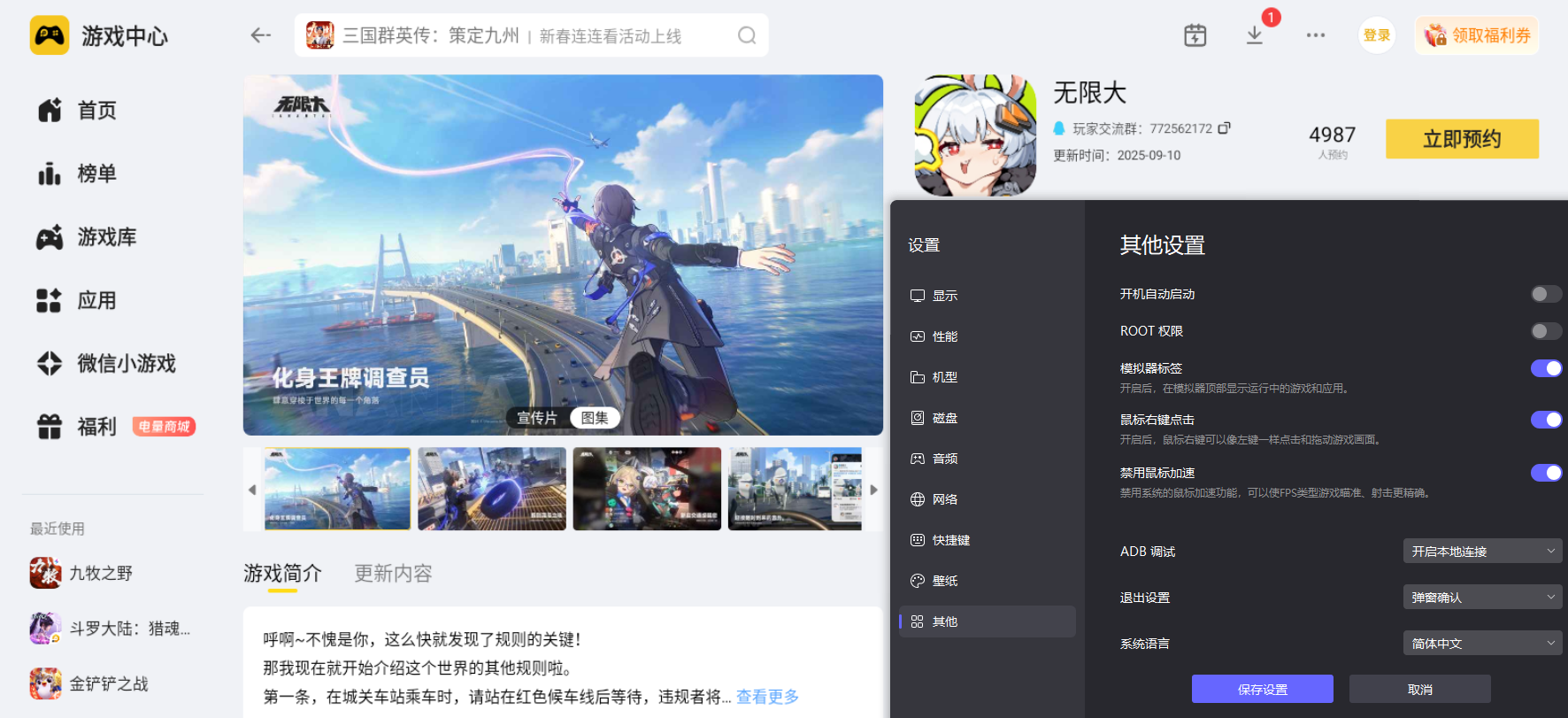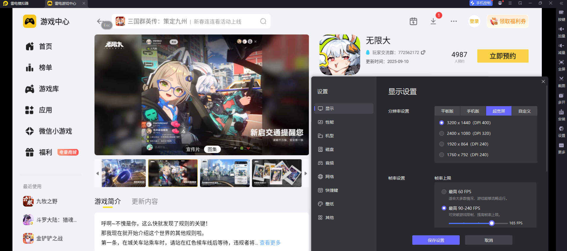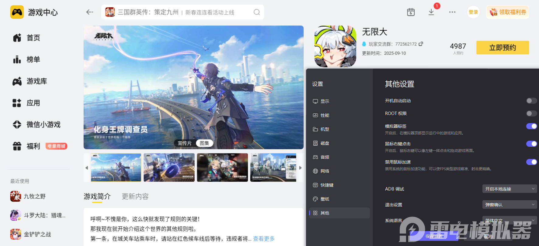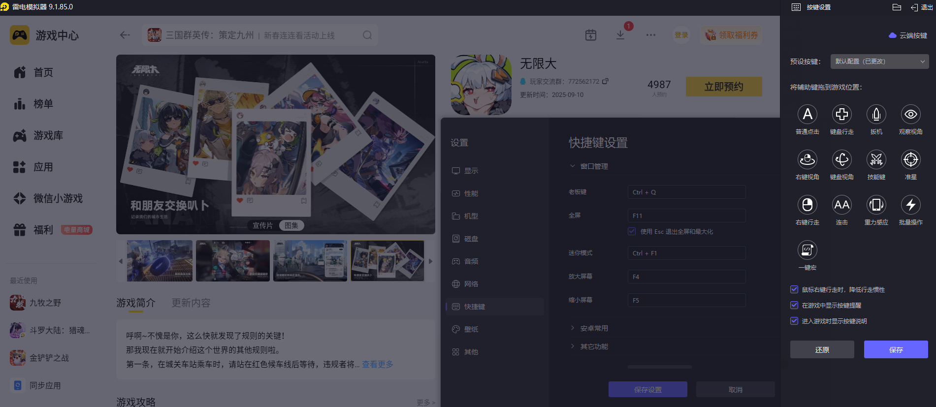 二、雷电模拟器畅玩《无限大》的操作与画面体验