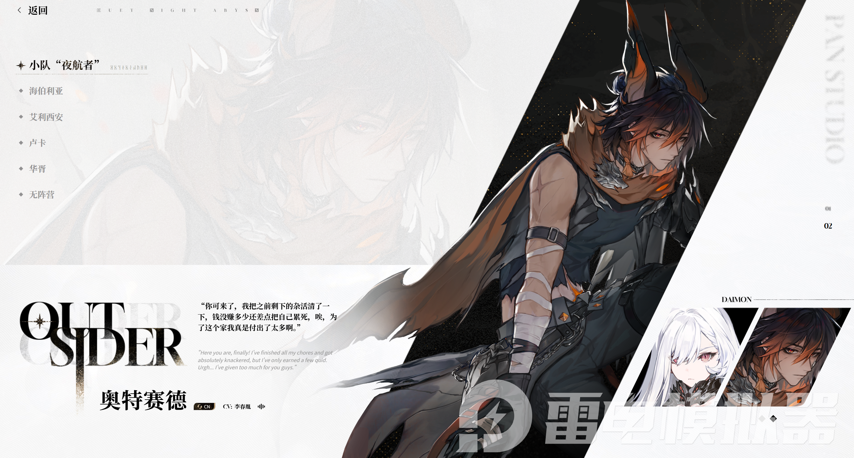 奥特赛德,小队“夜航者”的成员,被称为不省心小队的监护人。战斗偏向单体作战,单体输出不俗。