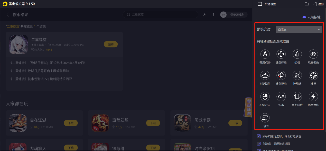雷电模拟器还支持两个非常哇塞的功能,雷电模拟器支持操作录制功能,玩家们只需要提前录制好游戏的操作,就可以在工作的时候让模拟器自动运行打怪升级,自动收集材料。此外,模拟器还支持多开操作,玩家们可以同时登陆几个账号,一起游戏,节省了大量的每日任务时间,把更多的时间留给和朋友一起开黑。