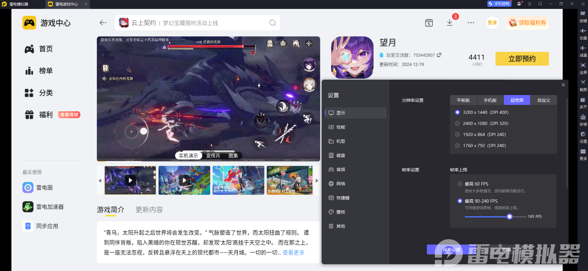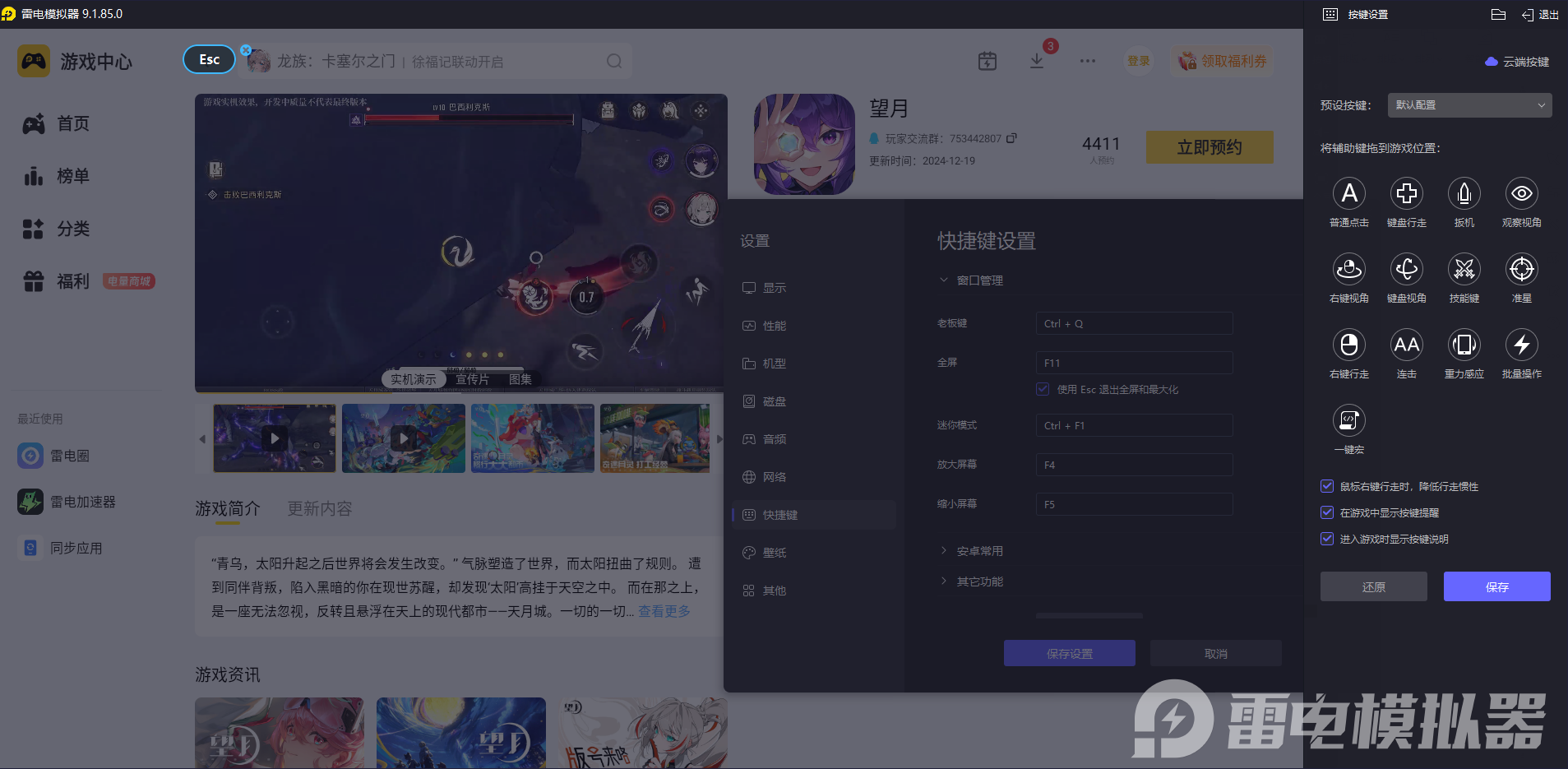 二、雷电模拟器玩《望月》:操作+画面适配玩法需求