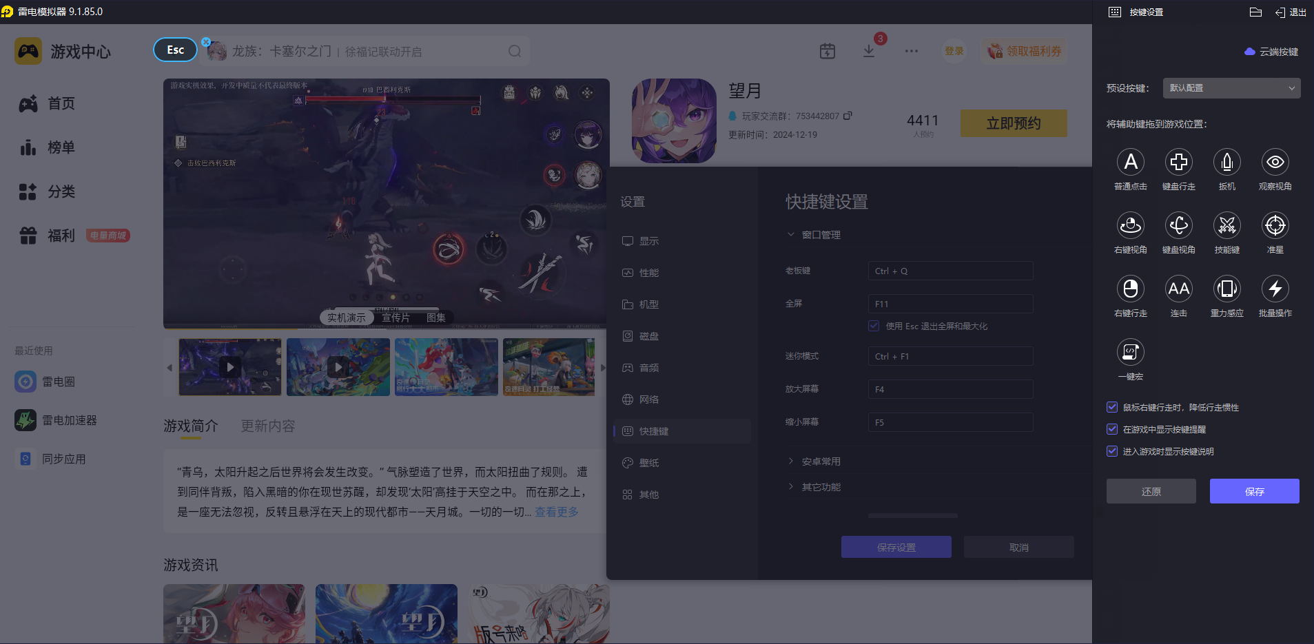 玩《望月》时,面对不同属性敌人需快速切换克制角色和技能,雷电模拟器支持键鼠自定义映射,常用技能可设置快捷键。比如遇到木属性敌人,能一键切换金属性角色释放强击技能;碰到火属性BOSS,迅速切水属性施加易伤,操作比手机触屏更灵敏,不会因切换不及时错过克制输出时机,精准契合五行克制的快速应变需求。